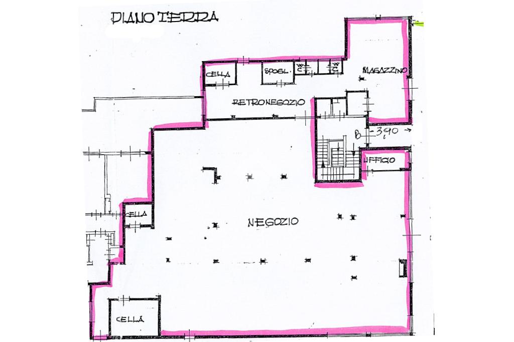 Proponiamo in locazione un negozio che dispone di una superficie utile di circa 660 metri quadrati, posto al piano terra di un edificio strutturato su quattro livelli complessivi; e ulteriori 190 metri quadrati adibiti a cantina situata al piano seminterrato.