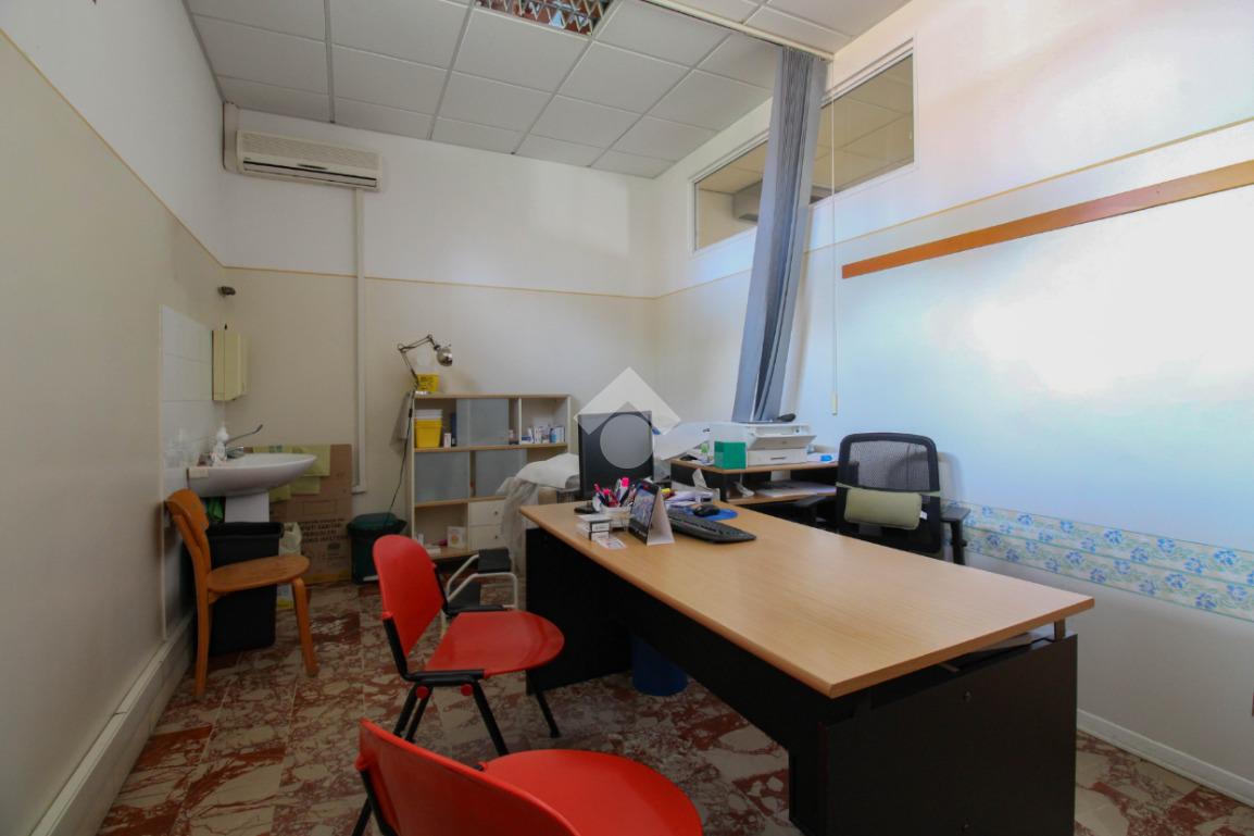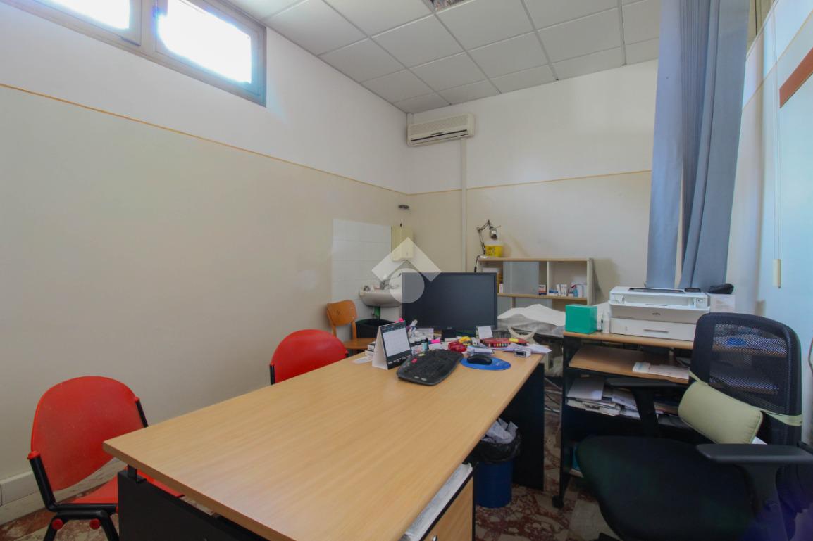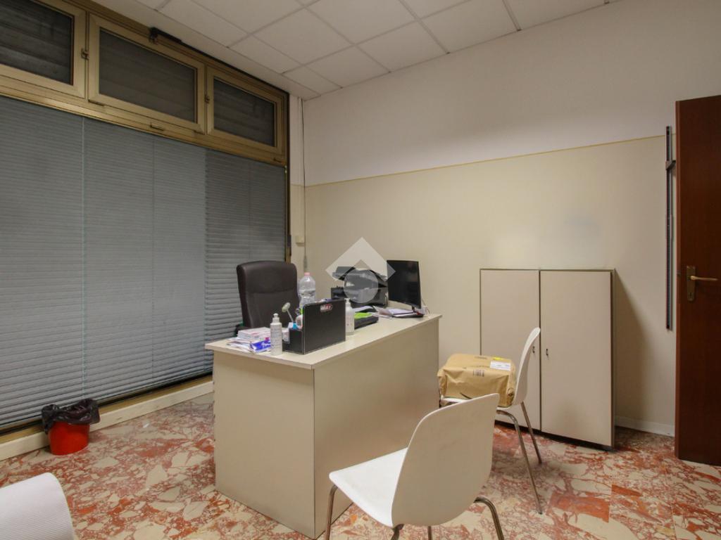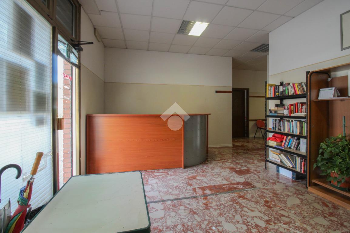 La struttura proposta in locazione si sviluppa su di una superficie commerciale di circa 100 metri quadrati disposti al piano terra di un edificio strutturato su due livelli. Internamente l'immobile è suddiviso in quattro stanze rese molto luminose grazie alla presenza di tre vetrine con affaccio esterno. Il locale è completo degli impianti elettrico, di illuminazione, di riscaldamento e di condizionamento. A completare la soluzione la presenza di due servizi igienici privati.