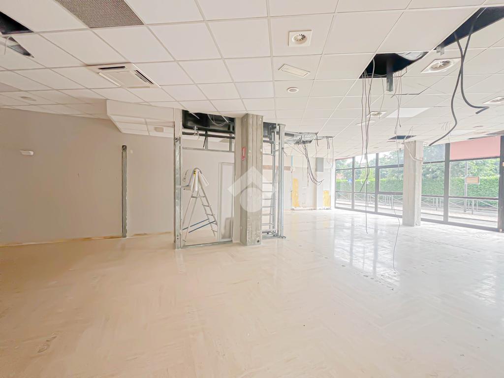 La soluzione proposta in locazione ha una superficie utile complessiva di circa 145 metri quadrati, distribuiti al piano terra in un edificio strutturato su tre livelli. Internamente l’ufficio si presenta come un ampio open space reso particolarmente luminoso grazie alla presenza di cinque vetrine con affaccio esterno. L’immobile è completo degli impianti elettrico, di illuminazione, di riscaldamento e di condizionamento. A completare la soluzione la presenza di un servizio igienico privato.