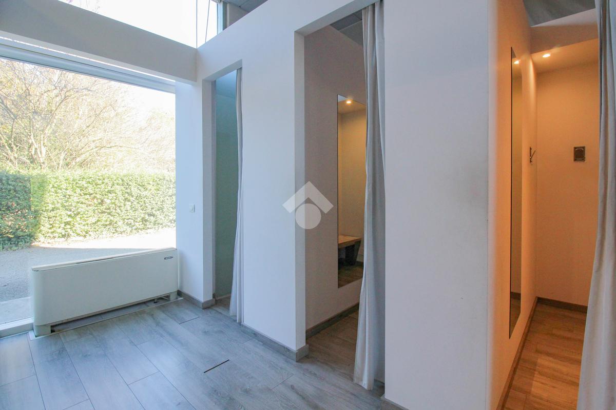 La soluzione proposta in vendita dispone di una superficie calpestabile di circa 450 metri quadrati, ed è situata al piano terra di una palazzina strutturata su due livelli complessivi. Internamente, l'immobile si presenta come un ampio open space reso particolarmente luminoso grazie alla presenza di quindici vetrine. Il locale è dotato dell'impianto elettrico, di illuminazione, di riscaldamento, di condizionamento e dell’impianto di allarme. A completare la soluzione è la presenza di un servizio igienico privato.