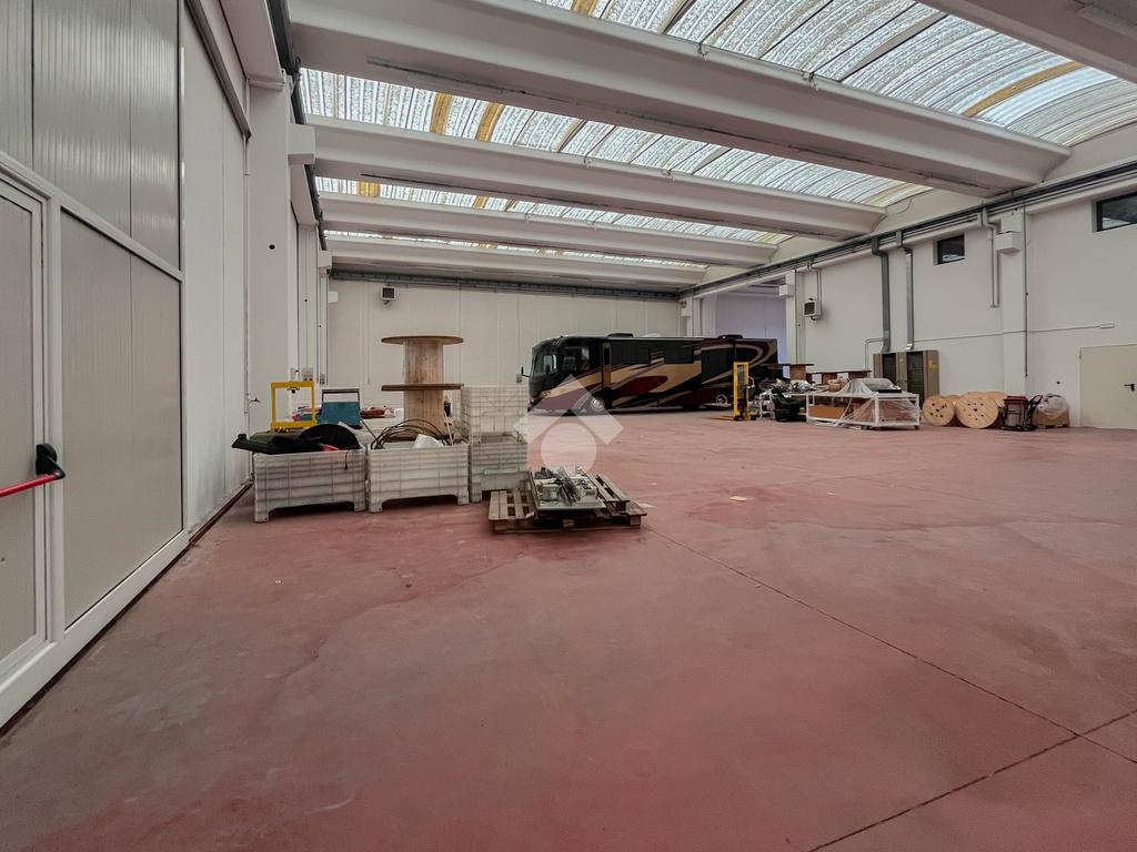 Il capannone proposto in vendita dispone di una superficie calpestabile di circa 800 metri quadrati e presenta ulteriori 400 metri quadri di uffici situati al primo e secondo piano. Internamente, l'immobile si sviluppa lungo un’unica campata, possiede un'altezza massima di circa 8,00 metri, con altezza sottotrave di 7,50 metri, ed è accessibile tramite tre portoni alti 5,00 metri. La struttura è dotata dell’impianto elettrico, di illuminazione e quello di riscaldamento. Inoltre sono presenti sei servizi igienici privati provvisti di docce e spogliatoi. La soluzione è munita delle mensole per l’installazione del carroponte. Completa la proprietà un’area esterna esclusiva di circa 250 metri quadrati.