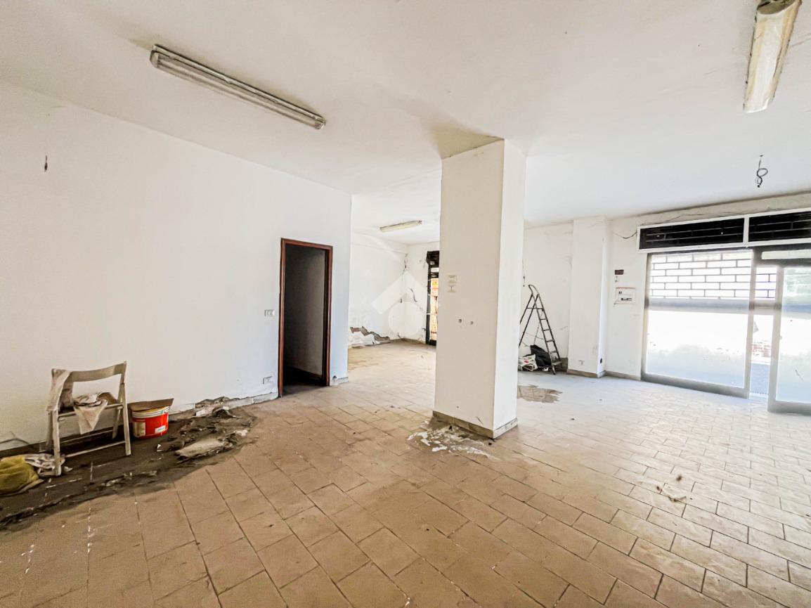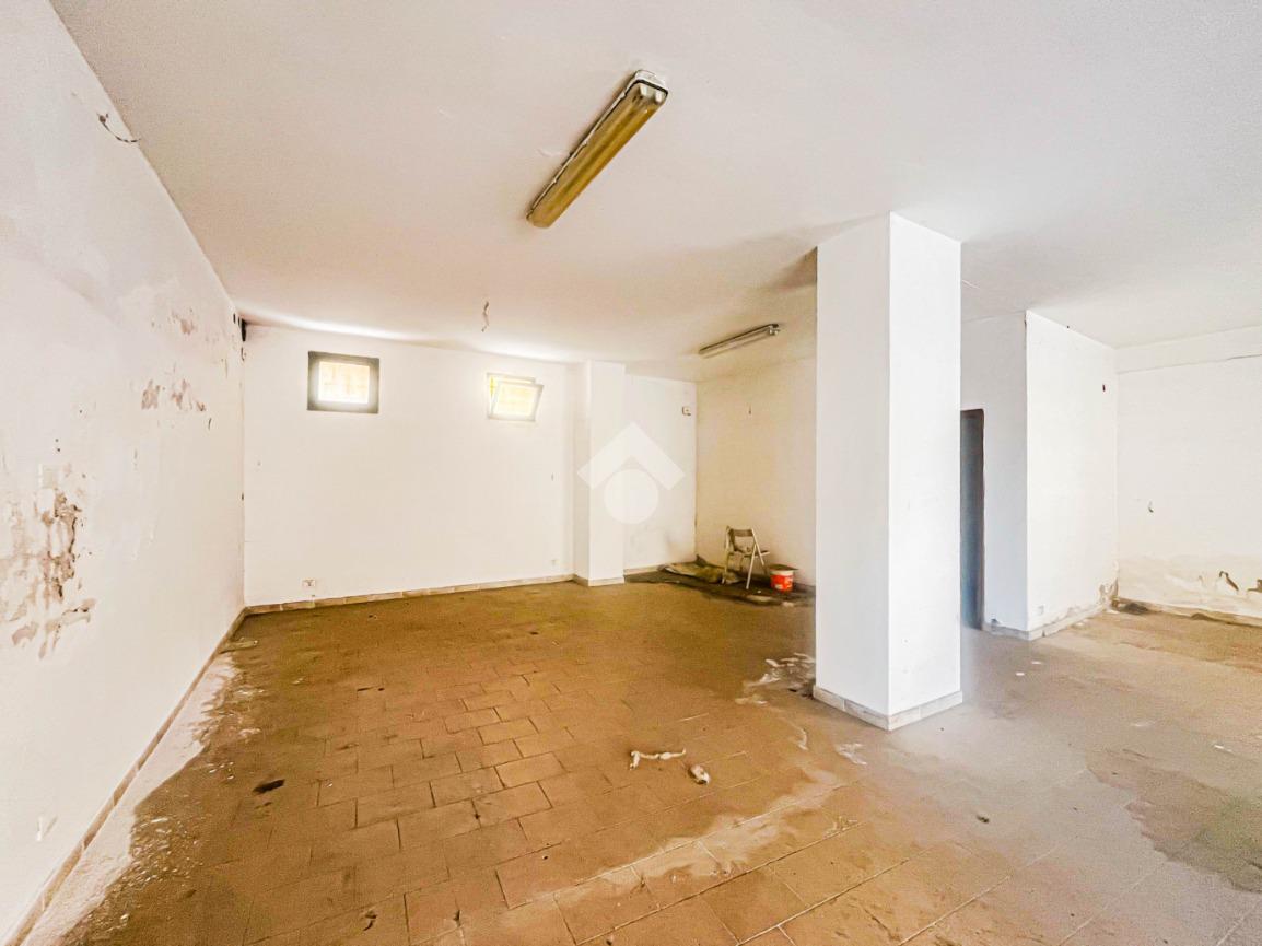 L'immobile si sviluppa interamente al piano terra e offre una superficie utile di circa 100 metri quadrati. Internamente, il negozio si presenta come un ampio open space, che risulta particolarmente luminoso grazie alla presenza di due vetrine con affaccio diretto sulla strada. Il locale è dotato degli impianti elettrico, di illuminazione e di canna fumaria. A completare la soluzione è la presenza di un servizio igienico privato e di ulteriori 20 metri quadrati adibiti a deposito e disposti al piano terra dell'edificio.