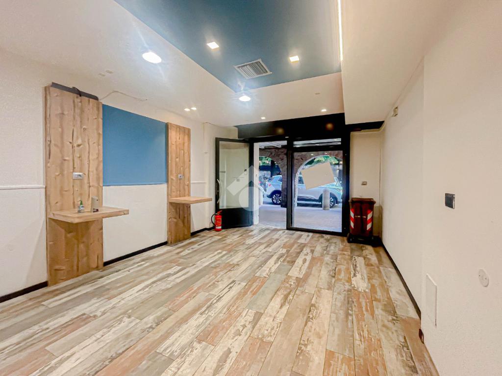 La soluzione proposta in locazione dispone di una superficie calpestabile di circa 60 metri quadrati, ed è situata al piano terra di una palazzina strutturata su tre piani. Internamente, l'immobile si presenta come un ampio open space reso particolarmente luminoso grazie alla presenza di una vetrina con affaccio esterno. Il locale è dotato dell'impianto elettrico, di riscaldamento, di condizionamento e di illuminazione. A completare la soluzione è la presenza di due servizi igienici privati.