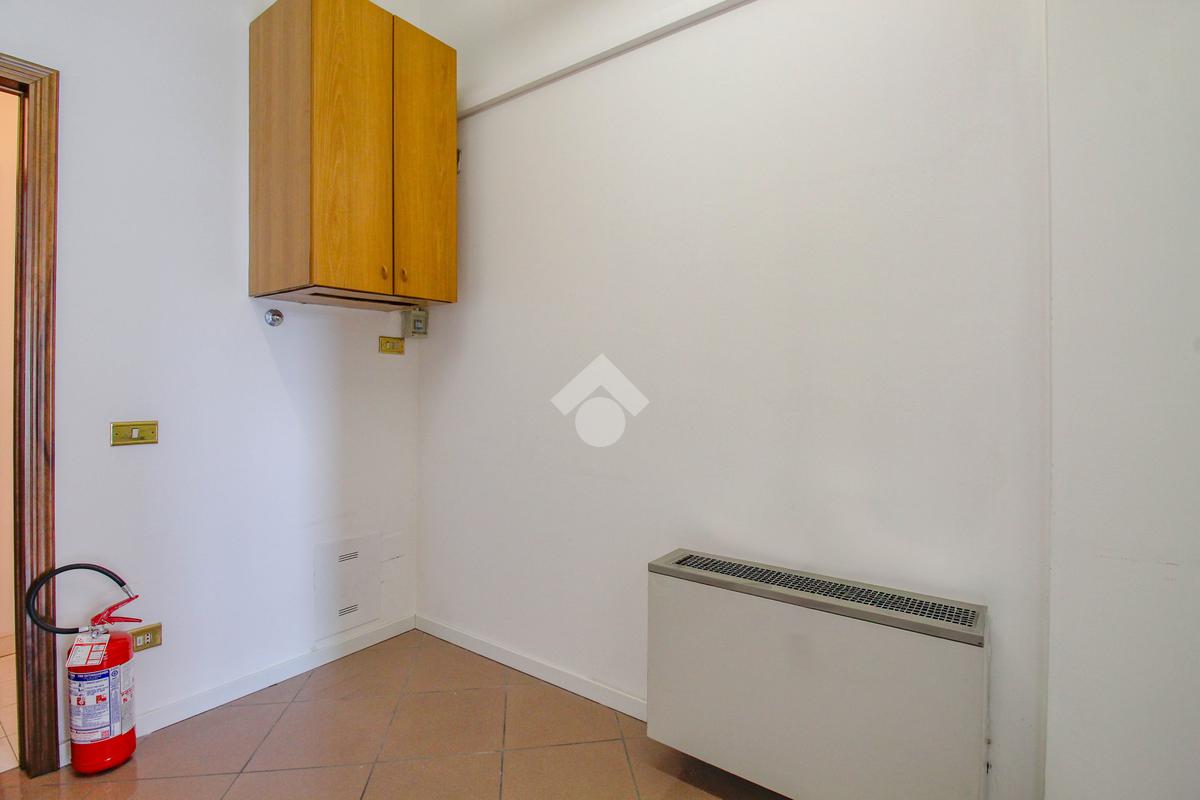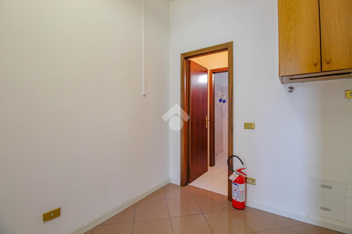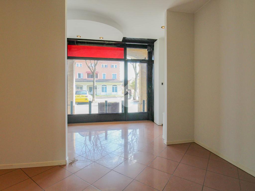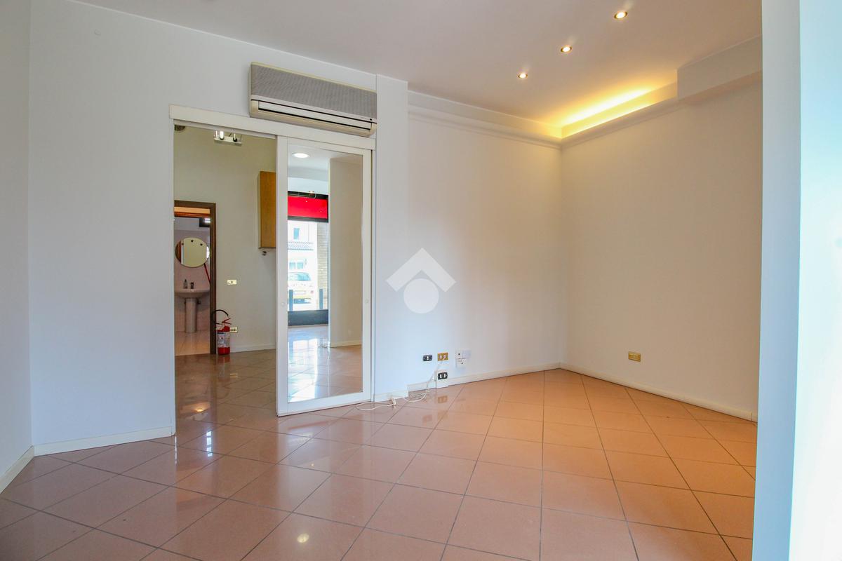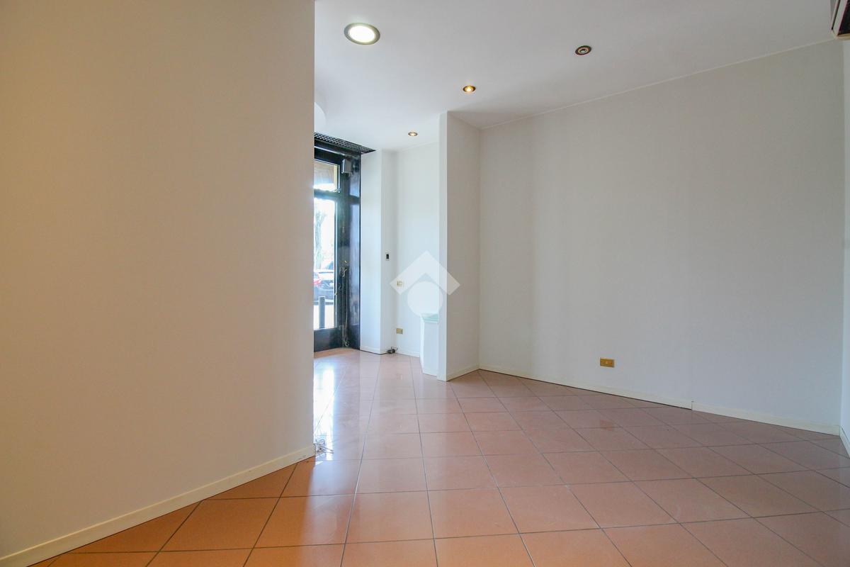 La soluzione proposta in vendita dispone di una superficie calpestabile di circa 45 metri quadrati, ed è situata al piano terra di una palazzina strutturata su quattro piani. Internamente, l'immobile si presenta come un ampio open space reso particolarmente luminoso grazie alla presenza di una vetrina con affaccio esterno. Il locale è dotato dell'impianto elettrico, di riscaldamento, di condizionamento e di illuminazione. A completare la soluzione è la presenza di un servizio igienico privato.