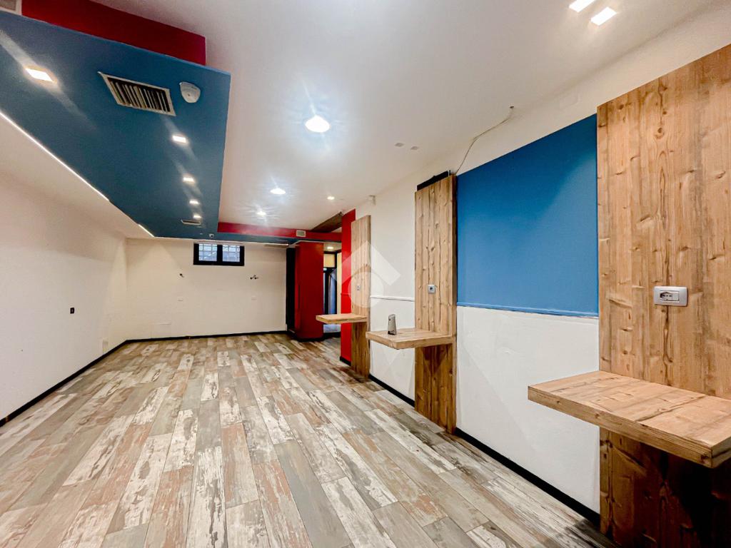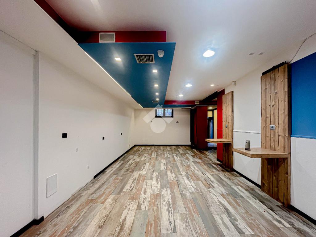 La soluzione proposta in vendita dispone di una superficie calpestabile di circa 60 metri quadrati, ed è situata al piano terra di una palazzina strutturata su tre piani. Internamente, l'immobile si presenta come un ampio open space reso particolarmente luminoso grazie alla presenza di una vetrina con affaccio esterno. Il locale è dotato dell'impianto elettrico, di riscaldamento, di condizionamento e di illuminazione. A completare la soluzione è la presenza di due servizi igienici privati.