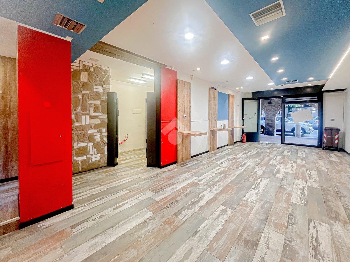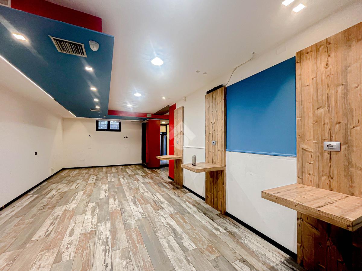 La soluzione proposta in locazione dispone di una superficie calpestabile di circa 60 metri quadrati, ed è situata al piano terra di una palazzina strutturata su tre piani. Internamente, la struttura si presenta come un ampio open space reso particolarmente luminoso grazie alla presenza di una vetrina. L'immobile è dotato dell'impianto elettrico, di riscaldamento e di illuminazione. A completare la soluzione è la presenza di due servizi igienici privati.