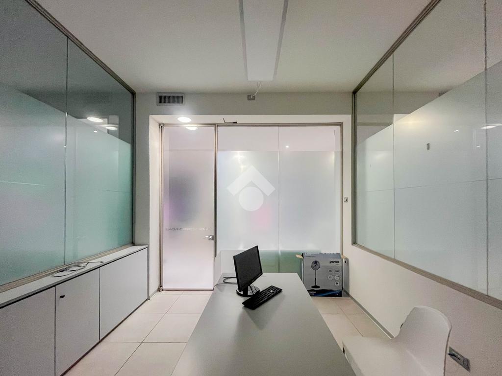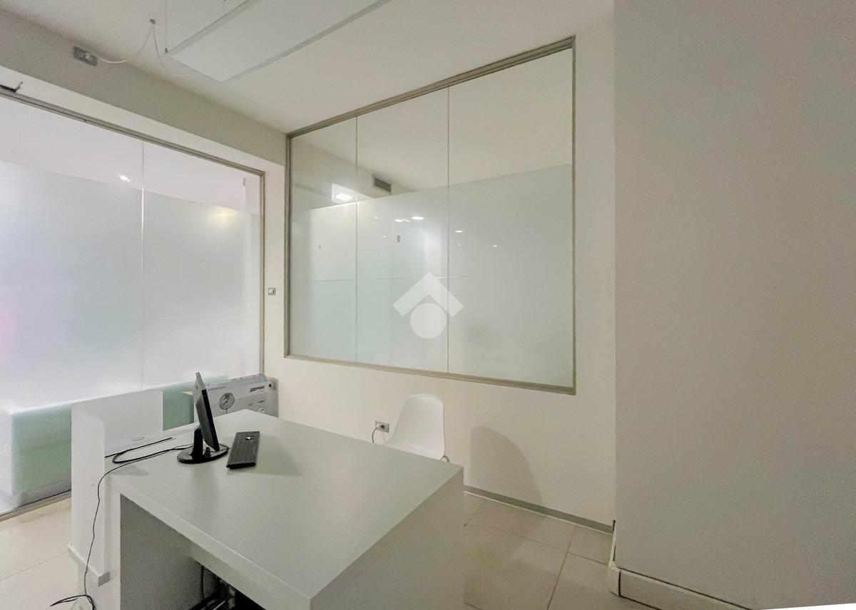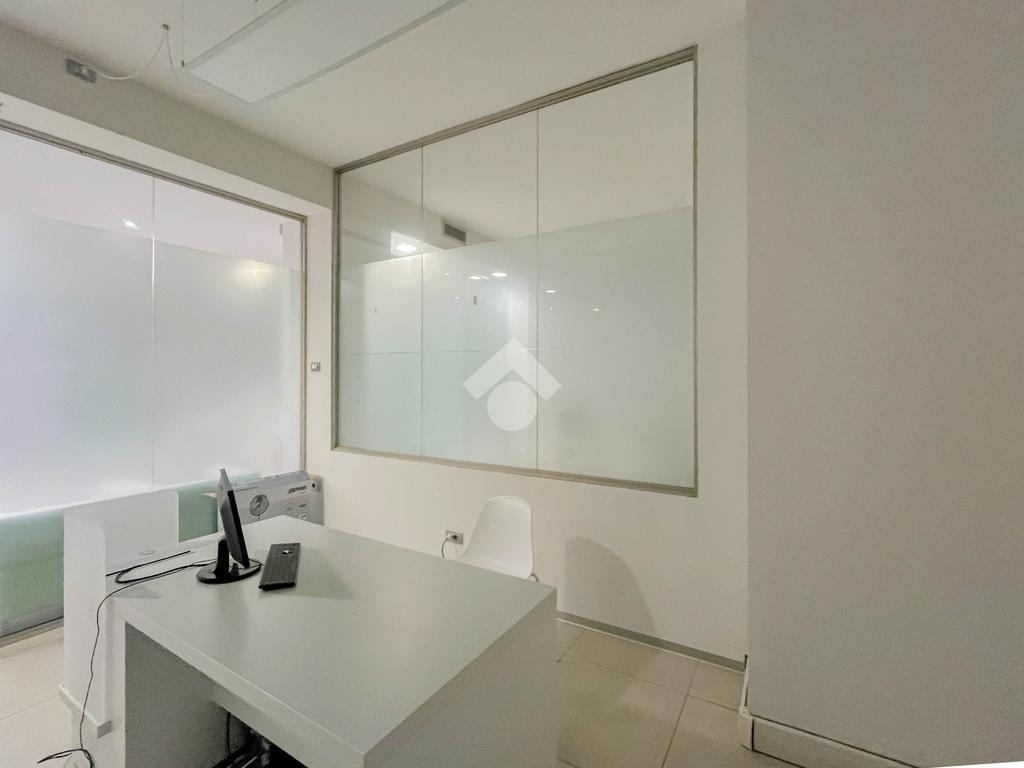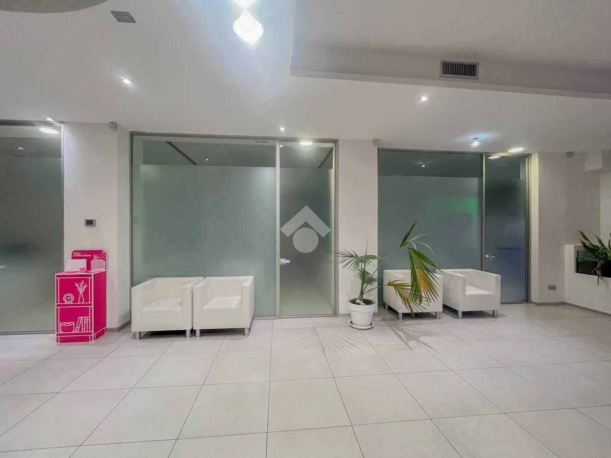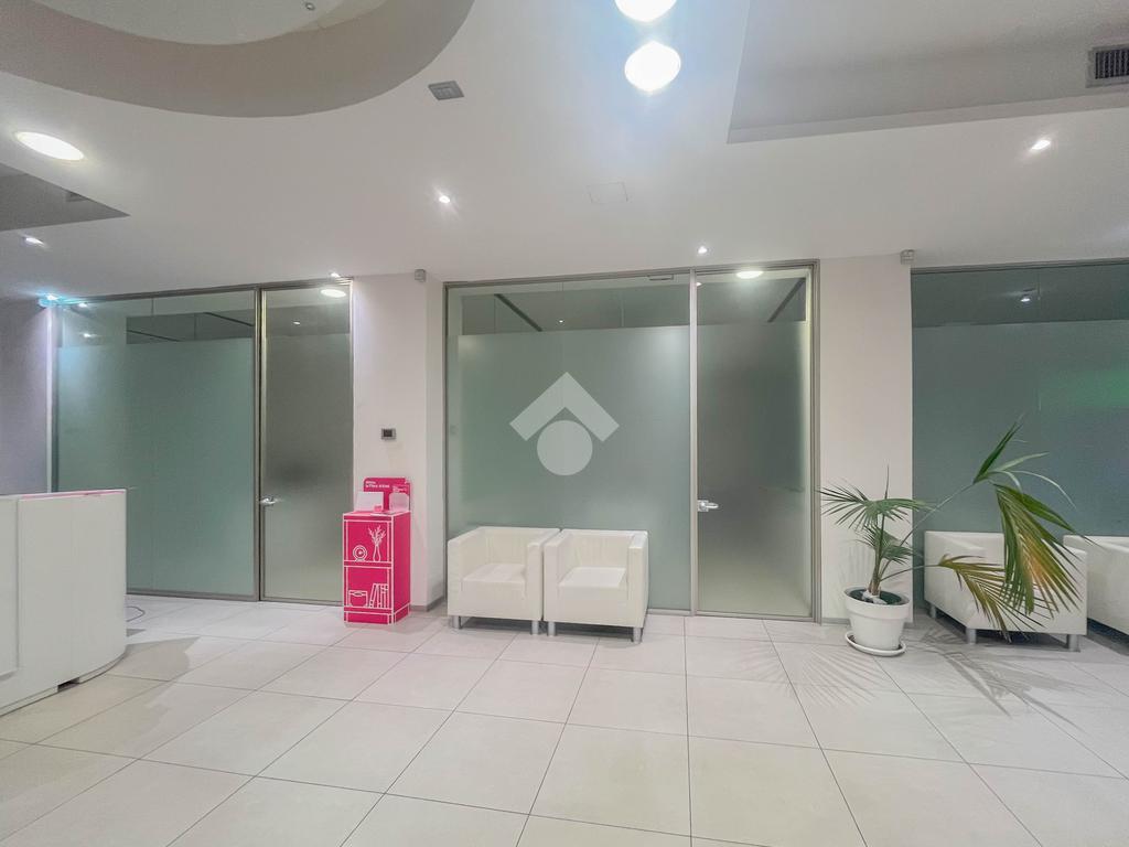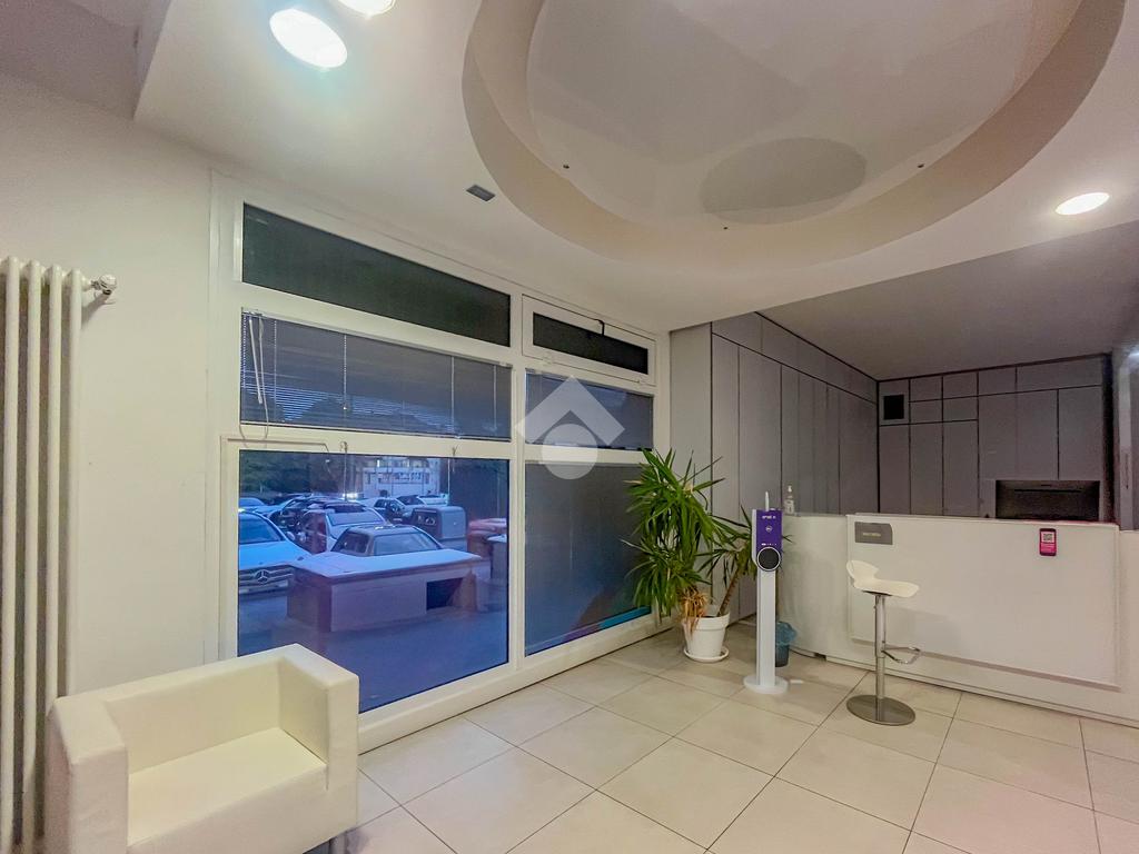 La soluzione proposta in locazione dispone di una superficie calpestabile di circa 190 metri quadrati, ed è situata al piano terra di una palazzina strutturata su due piani. Internamente, la struttura è suddivisa in 5 locali resi particolarmente luminosi grazie alla presenza di cinque grandi vetrine. L'immobile è dotato dell'impianto elettrico, di illuminazione, di riscaldamento e di condizionamento. A completare la soluzione è la presenza di due servizi igienici privati.