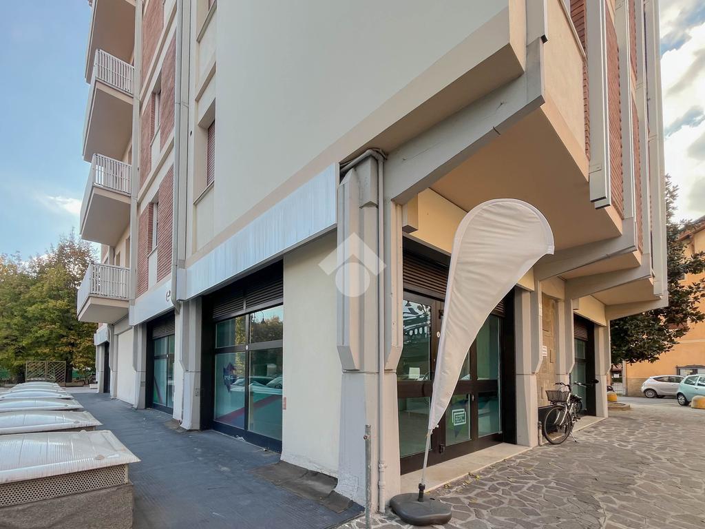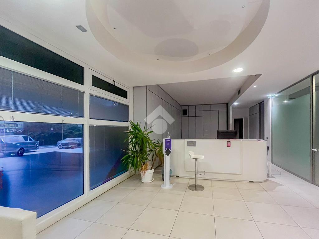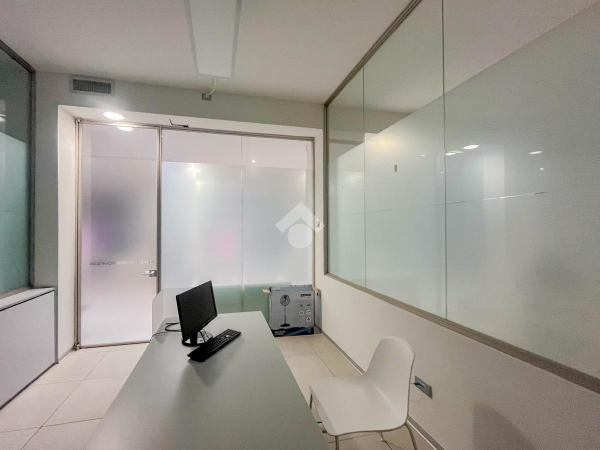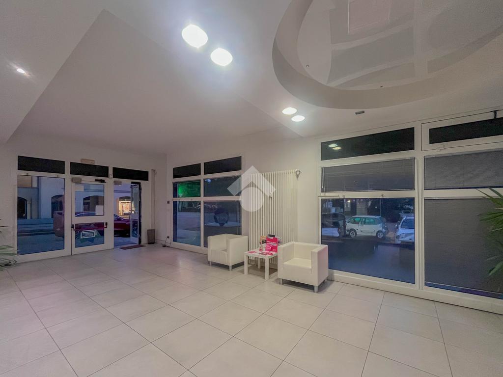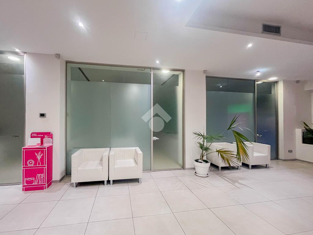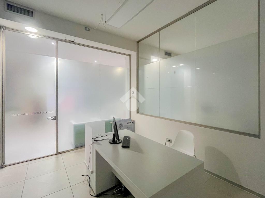 La soluzione proposta in locazione dispone di una superficie calpestabile di circa 190 metri quadrati, ed è situata al piano terra di una palazzina strutturata su due piani. Internamente, la struttura è suddivisa in 5 locali resi particolarmente luminosi grazie alla presenza di cinque grandi vetrine. L'immobile è dotato dell'impianto elettrico, di illuminazione, di riscaldamento e di condizionamento. A completare la soluzione è la presenza di due servizi igienici privati.