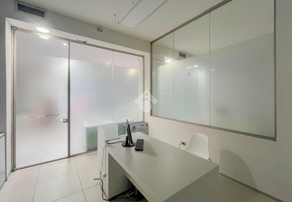 Proponiamo in locazione un ufficio che dispone di una superficie utile di circa 190 metri quadrati, posto al piano terra di un edificio strutturato su due piani.
