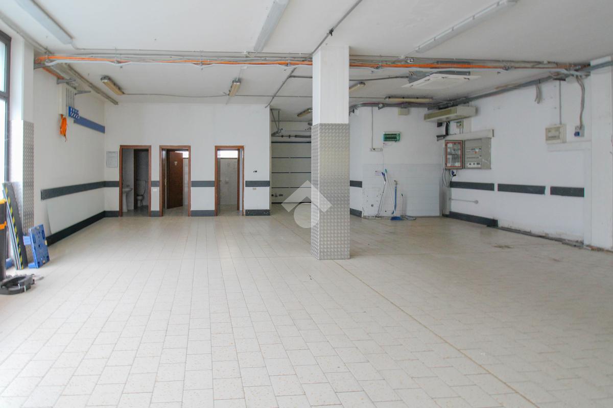 La struttura proposta in locazione dispone di una superficie calpestabile di circa 700 metri quadrati, ed è situata al piano terra di una palazzina sviluppata su due livelli. Internamente, l'immobile è suddiviso in due stanze rese particolarmente luminose grazie alla presenza di dieci vetrine con affaccio esterno. Il locale è dotato dell'impianto elettrico, di illuminazione, di riscaldamento, di condizionamento e dell’impianto antincendio. A completare la soluzione è la presenza di tre servizi igienici privati.