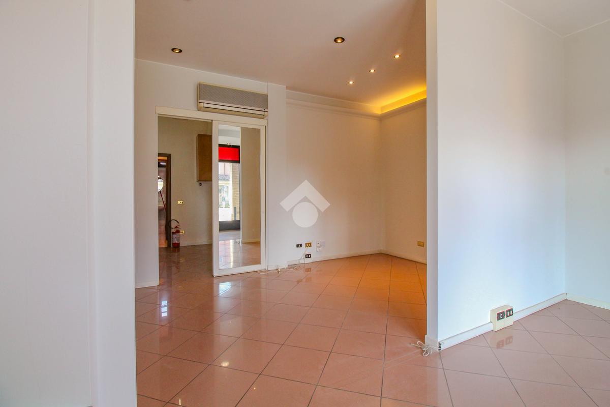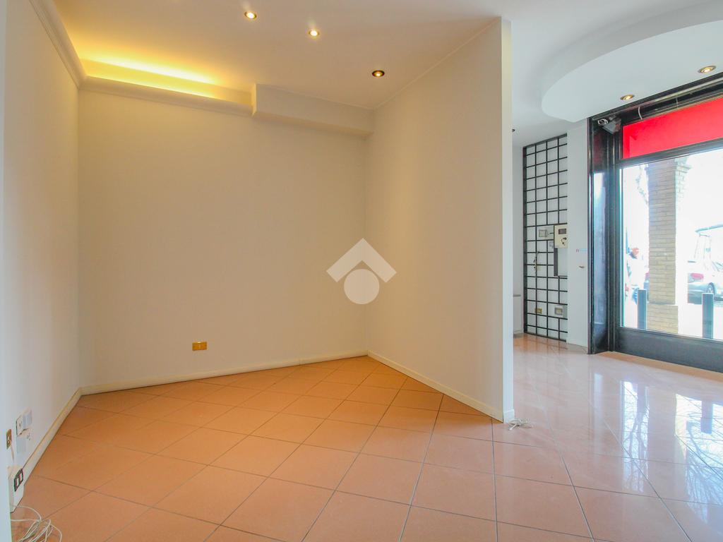 La soluzione proposta in vendita dispone di una superficie calpestabile di circa 45 metri quadrati, ed è situata al piano terra di una palazzina strutturata su quattro piani. Internamente, l'immobile si presenta come un ampio open space reso particolarmente luminoso grazie alla presenza di una vetrina con affaccio esterno. Il locale è dotato dell'impianto elettrico, di riscaldamento, di condizionamento e di illuminazione. A completare la soluzione è la presenza di un servizio igienico privato.