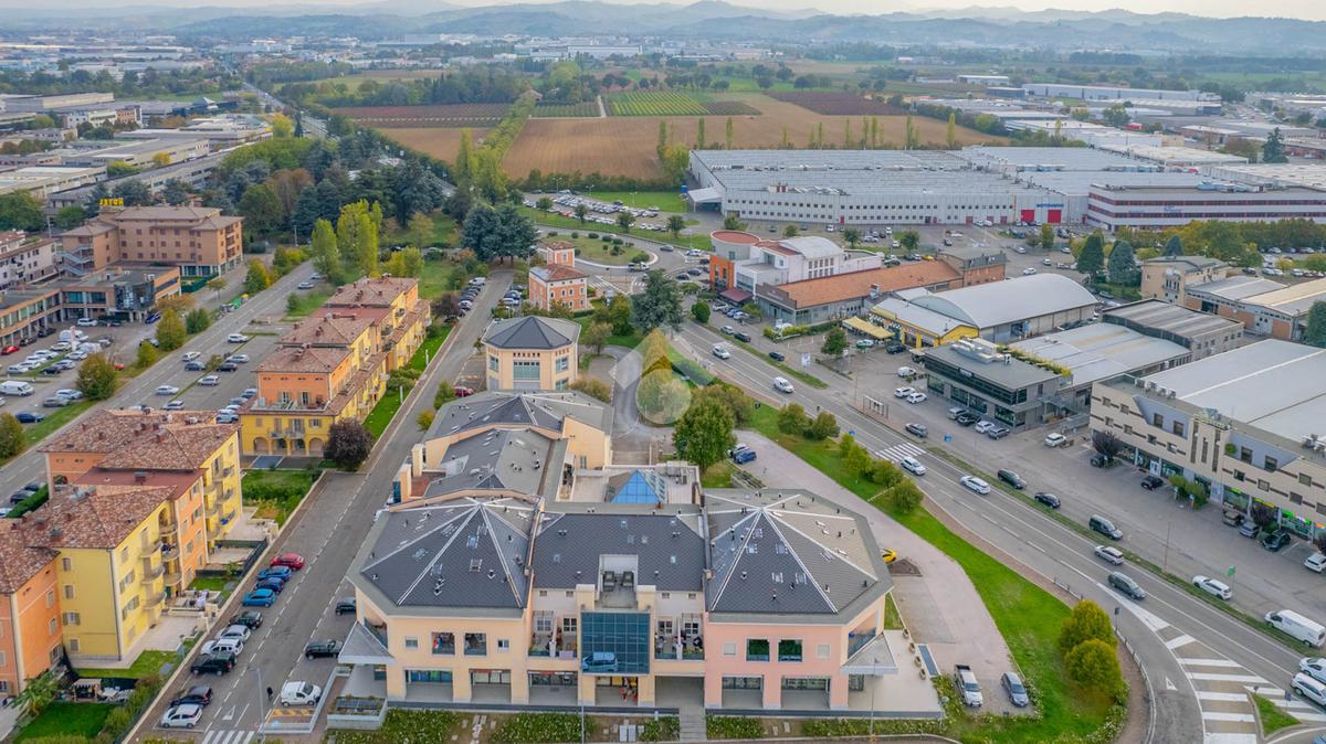 Il locale si trova in zona commerciale e di forte passaggio del Comune di Formigine e dispone di una quarantina di posti auto messi a disposizione per la clientela e ulteriori cinque posti auto ad uso esclusivo.