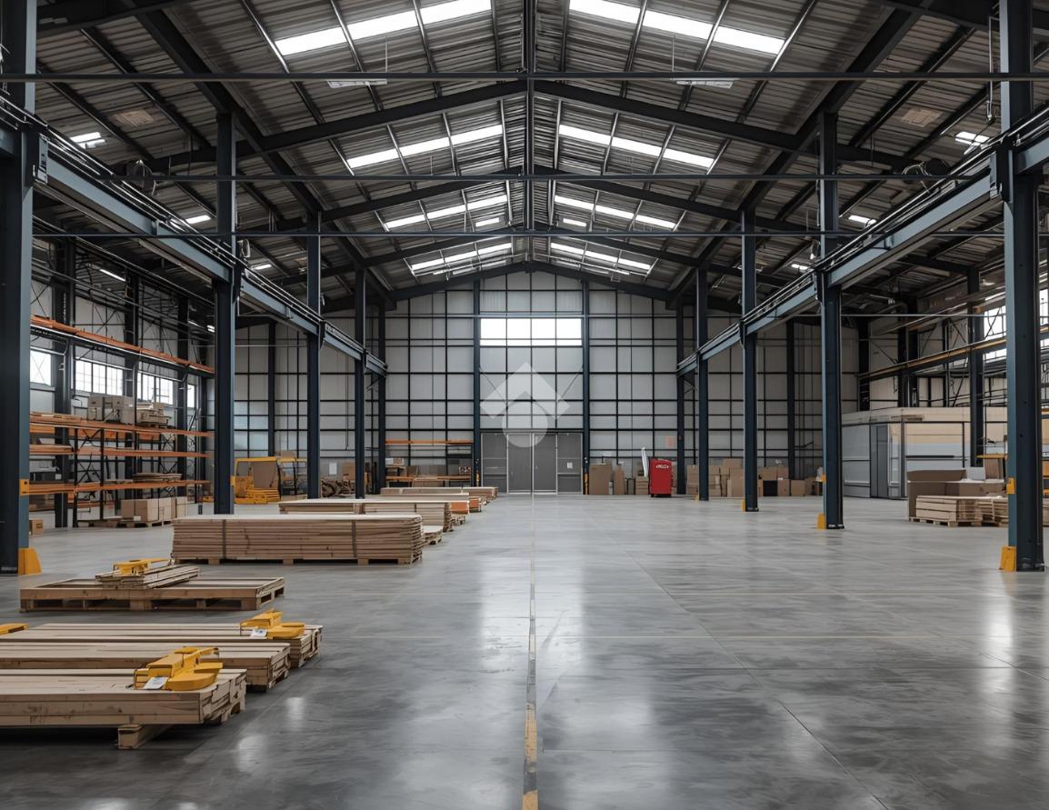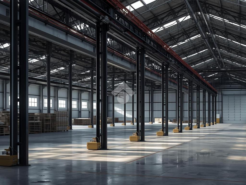 Internamente, l'immobile si sviluppa lungo due campate, possiede un'altezza massima di circa 6,75 metri, con altezza sottotrave di 5,75 metri, ed è accessibile tramite due portoni alti 4,50 metri.