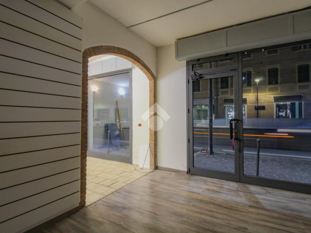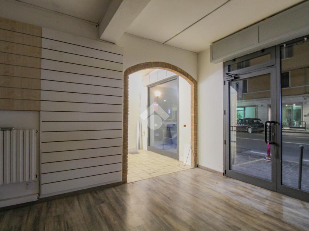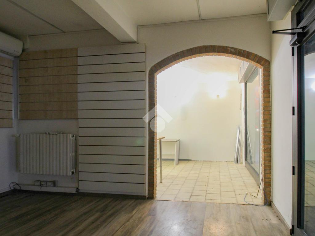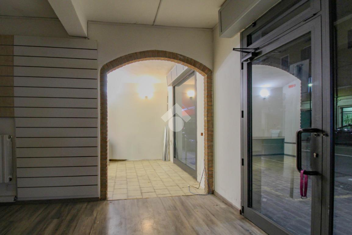 La soluzione proposta in locazione ha una superficie utile di circa 45 metri quadrati ed è situata al piano terra di una struttura condominiale che si sviluppa su tre livelli. Il locale si presenta come un ampio open space reso particolarmente luminoso grazie alla presenza di due vetrine con affaccio esterno. L'immobile è provvisto dell’impianto elettrico, di illuminazione, di riscaldamento e condizionamento. A completare la soluzione è la presenza di un servizio igienico privato.