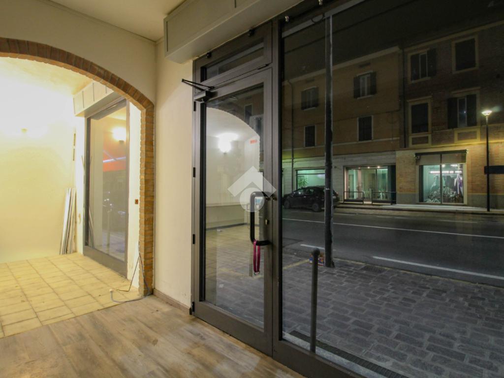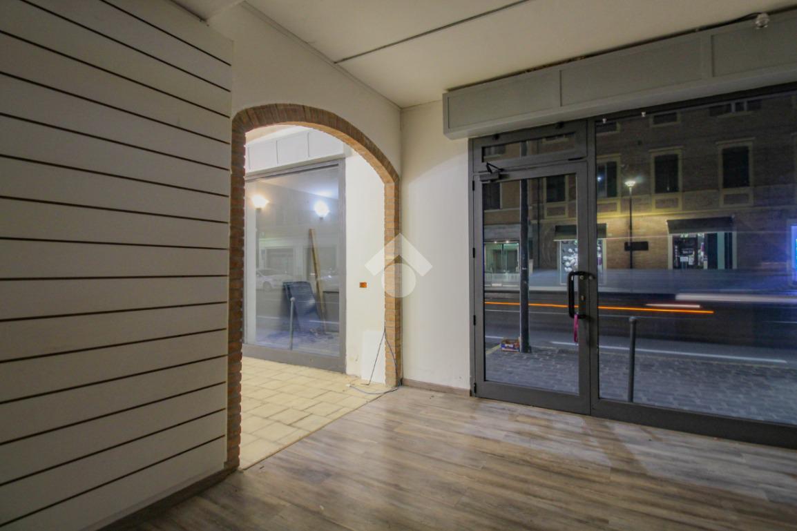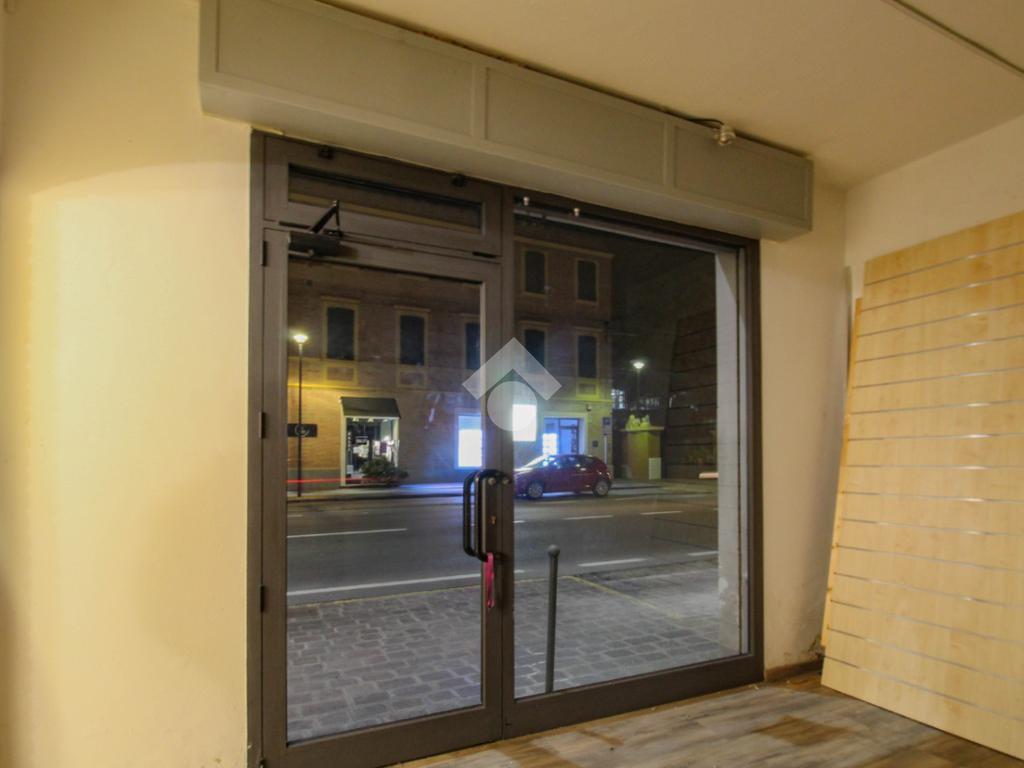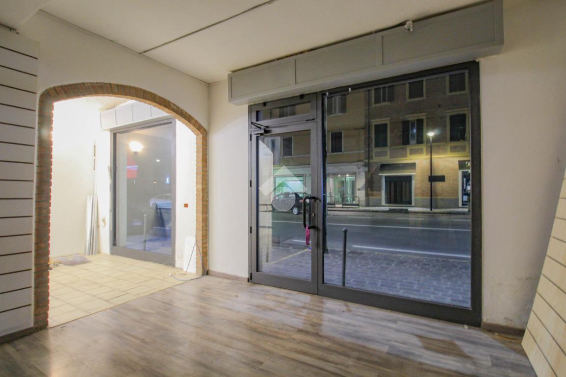 La soluzione proposta in locazione ha una superficie utile di circa 45 metri quadrati ed è situata al piano terra di una struttura condominiale che si sviluppa su tre livelli. Il locale si presenta come un ampio open space reso particolarmente luminoso grazie alla presenza di due vetrine con affaccio esterno. L'immobile è provvisto dell’impianto elettrico, di illuminazione, di riscaldamento e condizionamento. A completare la soluzione è la presenza di un servizio igienico privato.