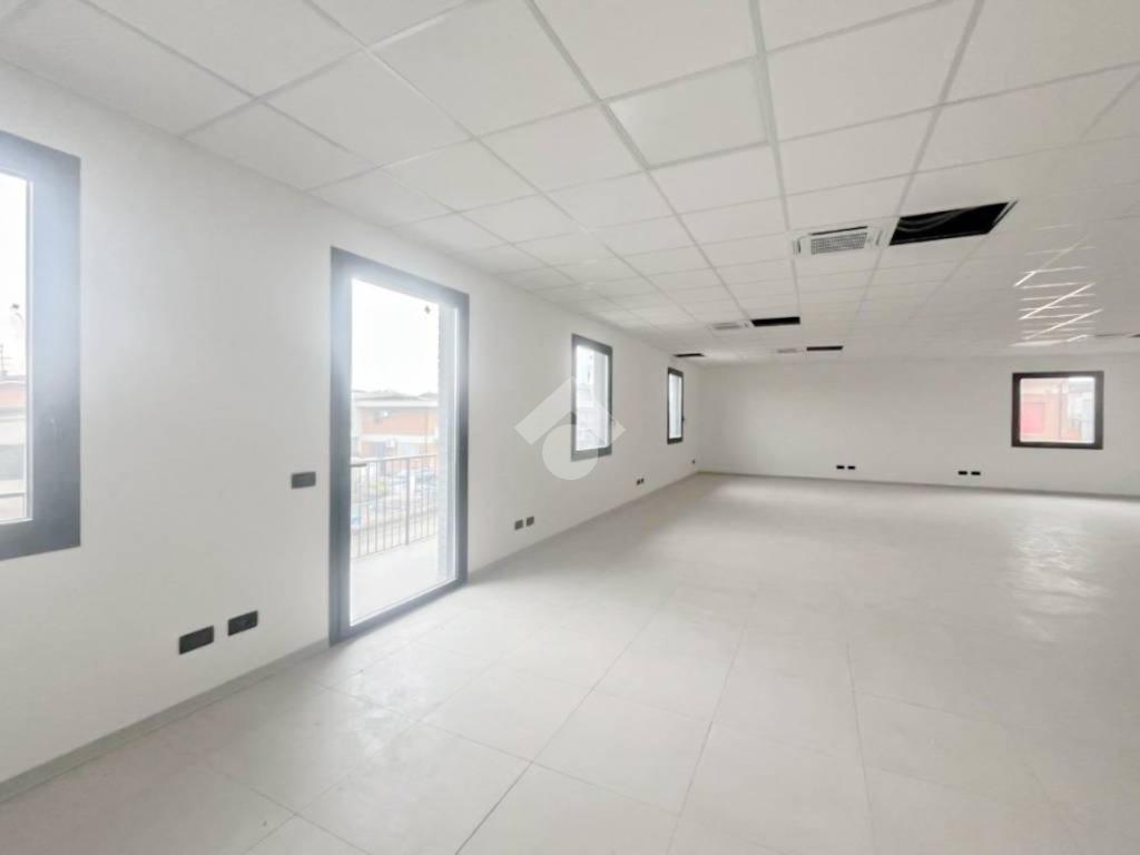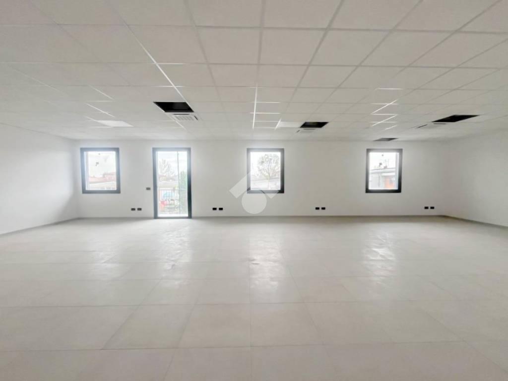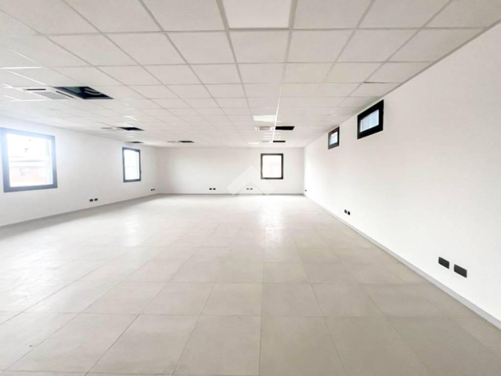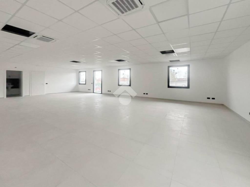 La soluzione proposta in locazione dispone di una superficie di circa 280 metri quadrati, sviluppati interamente su di un unico piano primo. Lo spazio si presenta diviso in due grandi open space speculari e molto luminosi grazie alla presenza di due vetrine e di numerose finestre apribili. L'immobile è completo degli impianti elettrico, di illuminazione, di riscaldamento e condizionamento. A completare la struttura è la presenza di due servizi igienici privati.