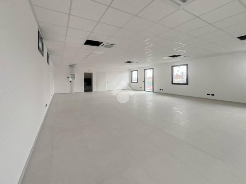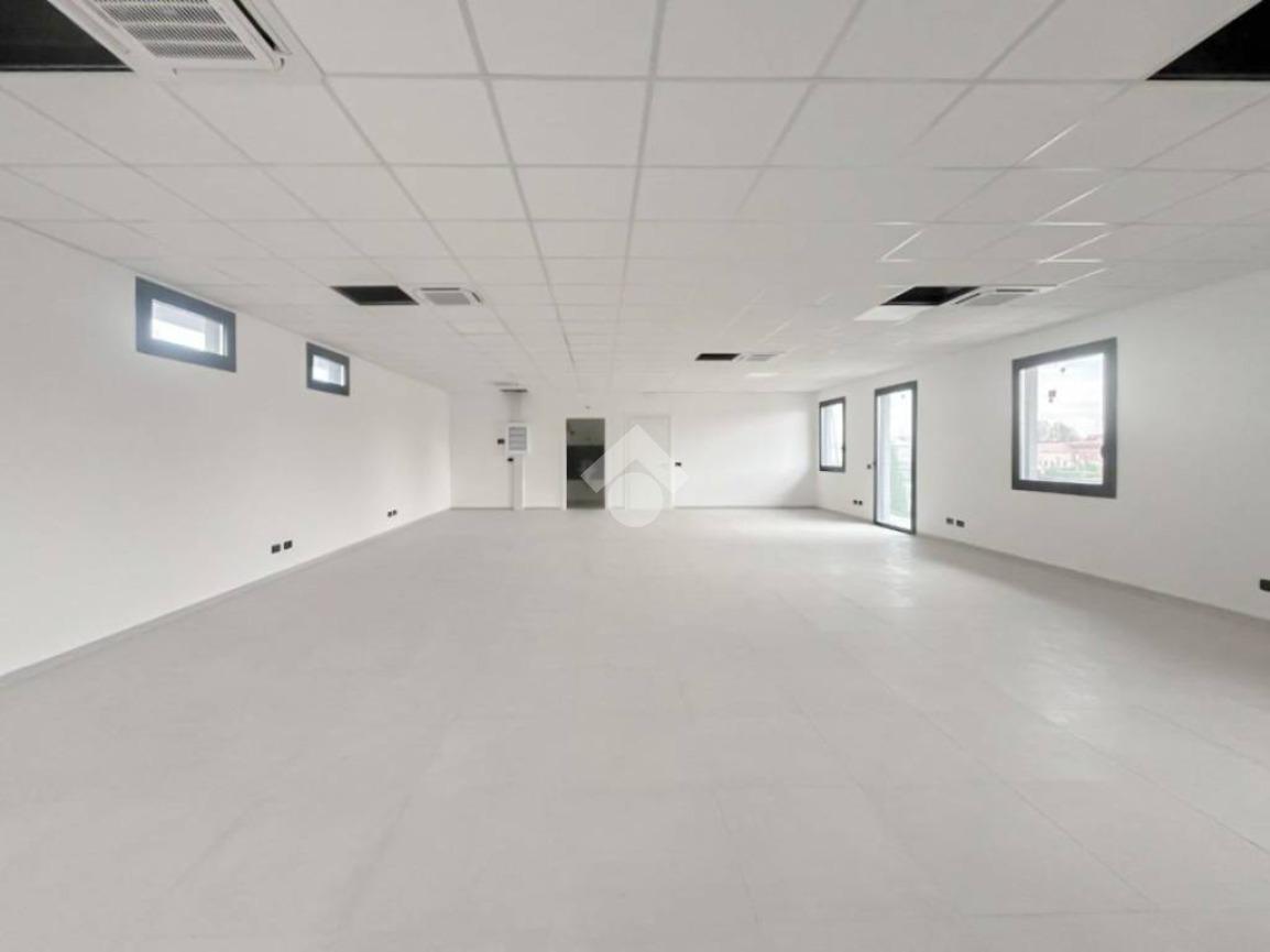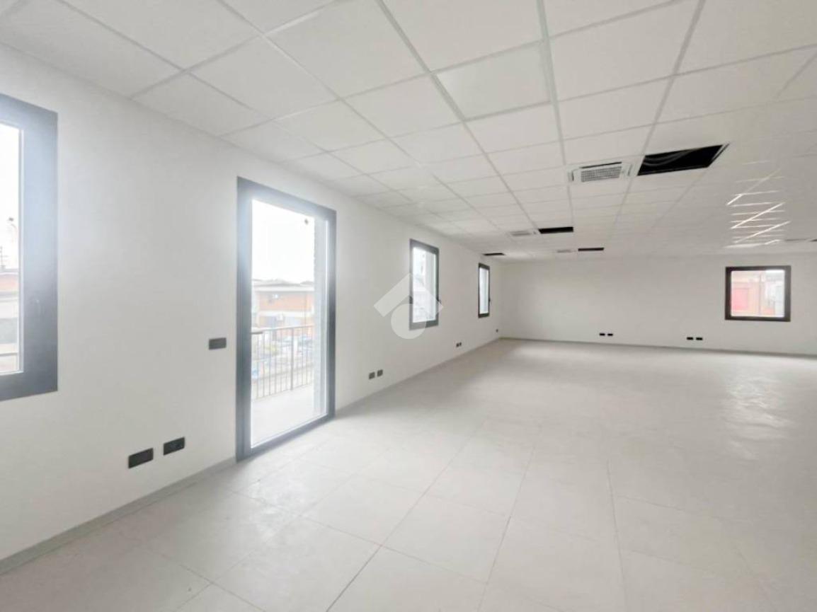 La soluzione proposta in locazione dispone di una superficie di circa 140 metri quadrati, sviluppati interamente su di un unico piano primo. Lo spazio si presenta come un grande open space luminoso, completo di una vetrina e di numerose finestre apribili. L'immobile è completo degli impianti elettrico, di illuminazione e dei sistemi di riscaldamento e condizionamento ad aria. A completare la soluzione è la presenza di un servizio igienico privato.