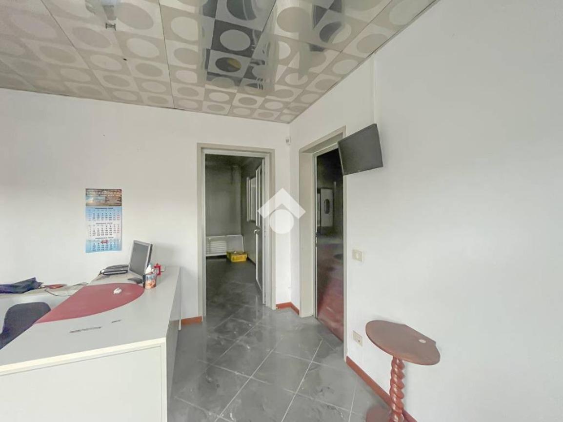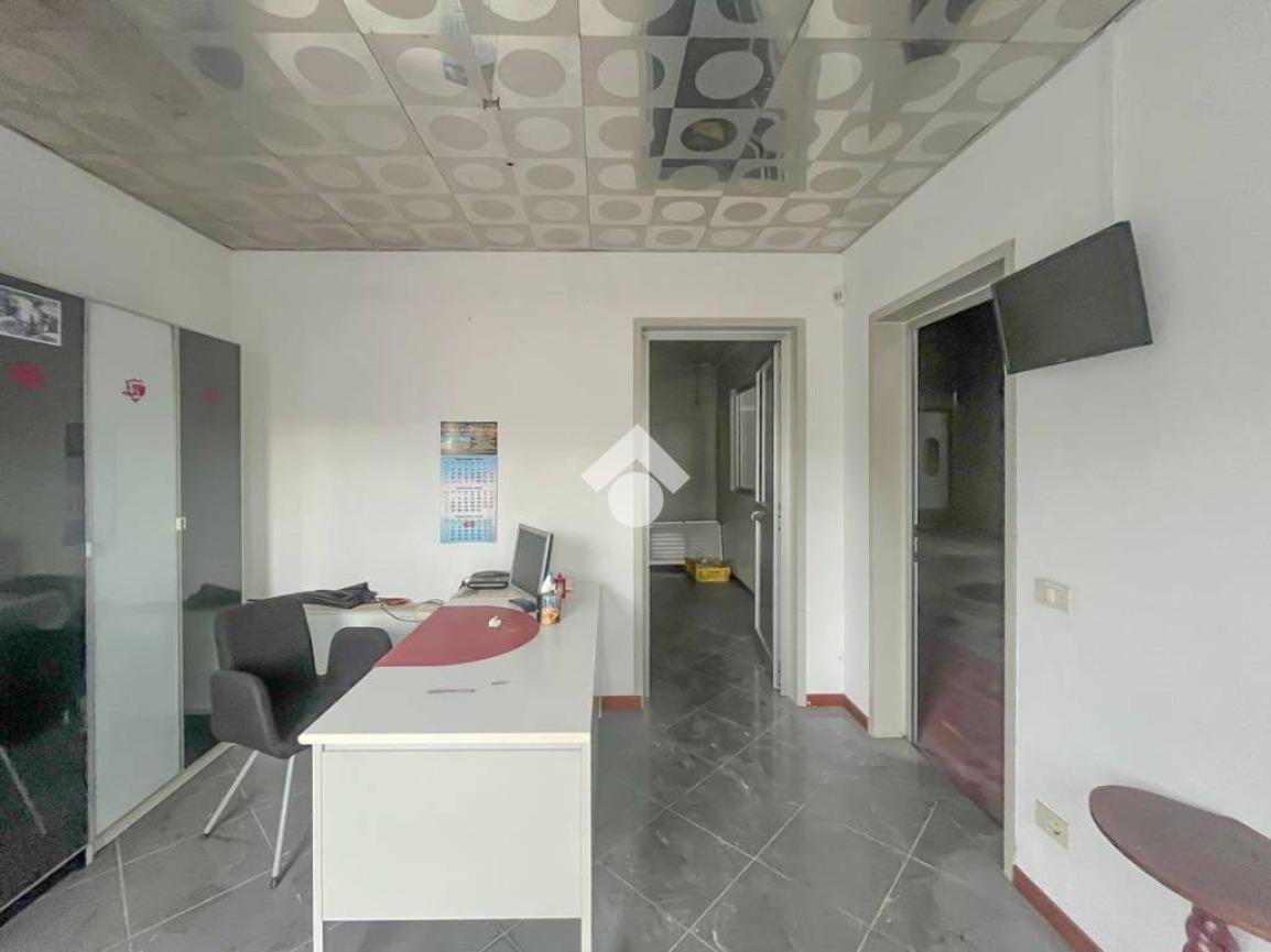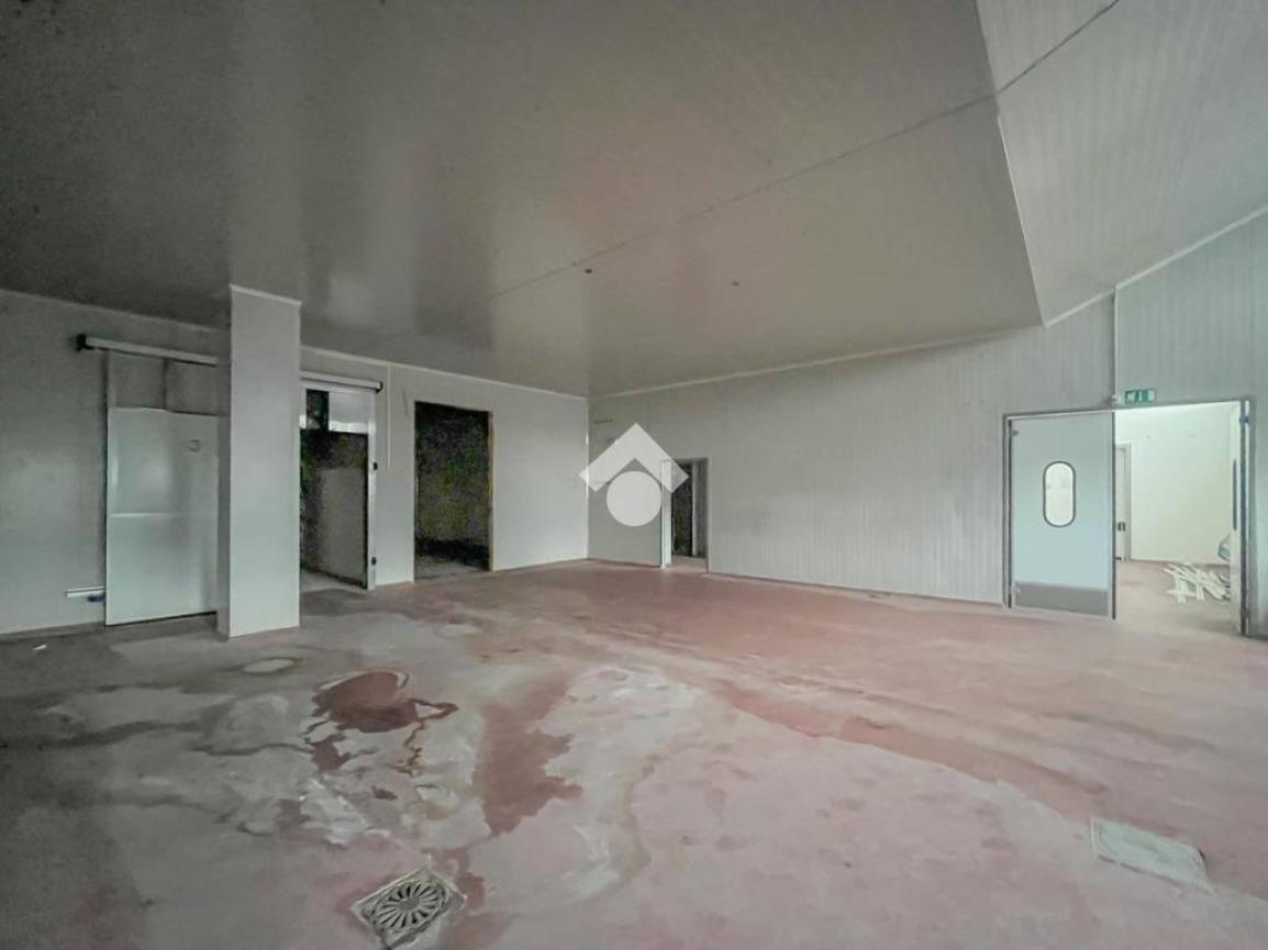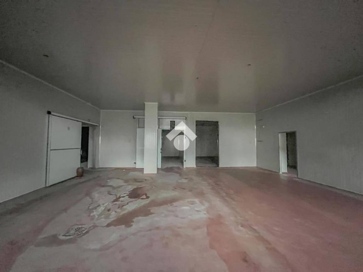 Proponiamo in locazione un capannone che dispone di una superficie di circa 800 metri quadrati, posto al piano terra di un edificio di due piani.