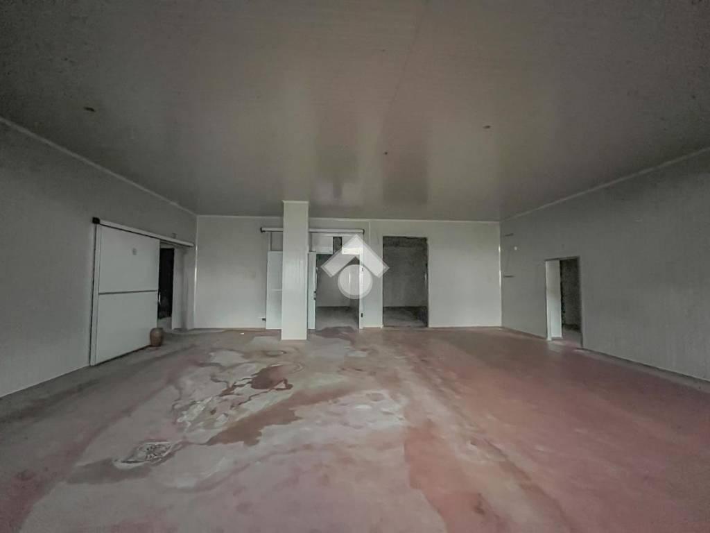 La soluzione proposta in vendita dispone di una superficie calpestabile di circa 800 metri quadrati e 200 metri quadrati di area esterna ad uso esclusivo. Internamente, l’immobile è suddiviso in diversi locali; inoltre, presenta 25 metri quadrati destinati ad uffici. Il negozio ha un’altezza di circa 4,50 metri, l’accesso avviene tramite due portoni di altezza 3,50 metri. L’immobile ed è dotato dell’impianto elettrico, di illuminazione e di riscaldamento. A completare la soluzione è la presenza di due servizi igienici, con spogliatoi e docce.
