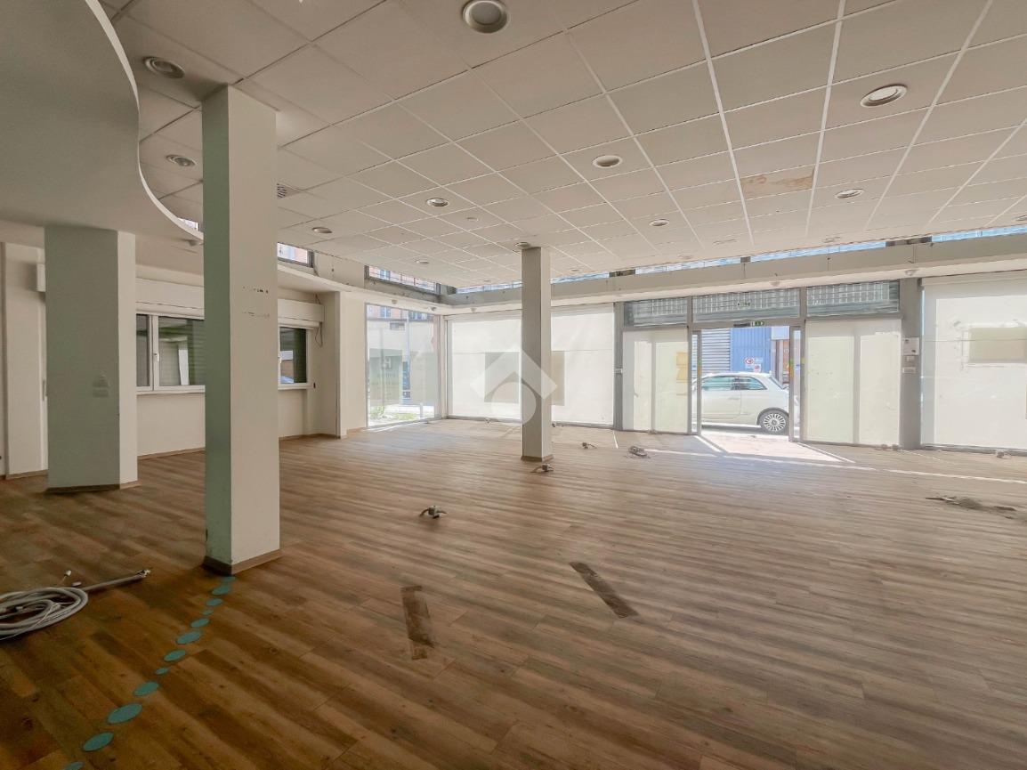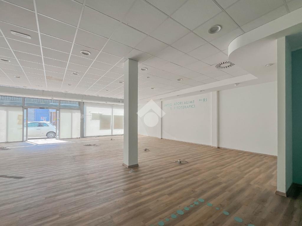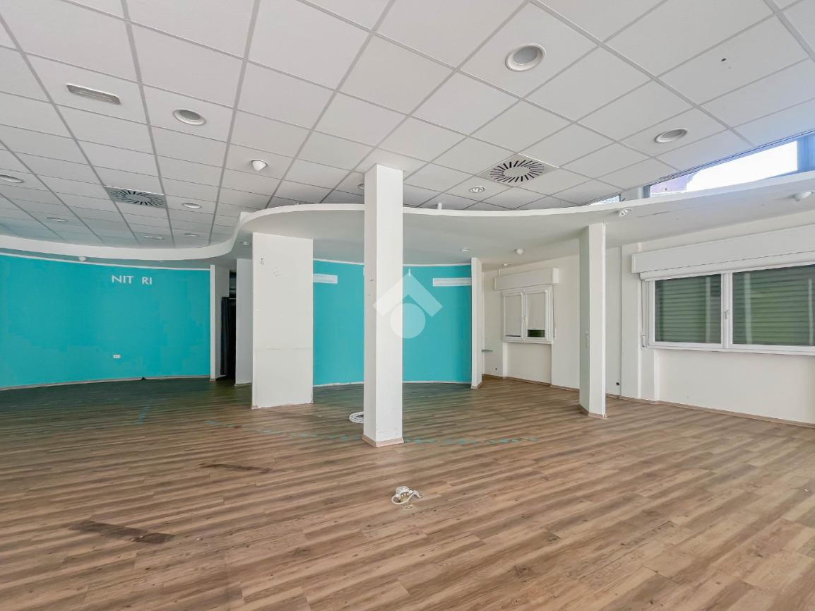 La soluzione proposta in locazione dispone di una superficie calpestabile di circa 275 metri quadrati, ed è situata al piano primo di una palazzina strutturata su due piani. Internamente, l’immobile risulta particolarmente luminoso grazie alla presenza di quattro vetrine, che favoriscono l’ingresso di un grande quantitativo di luce naturale. Il locale è dotato dell’impianto elettrico, di riscaldamento, di condizionamento e di illuminazione. A completare la soluzione è la presenza di due servizi igienici privati.