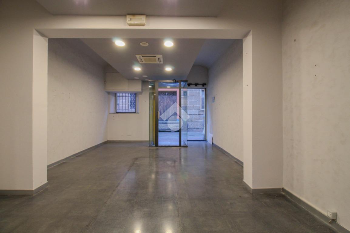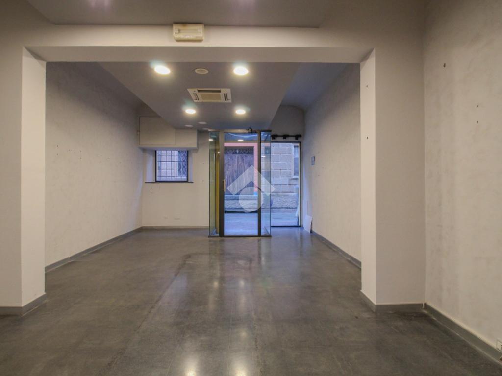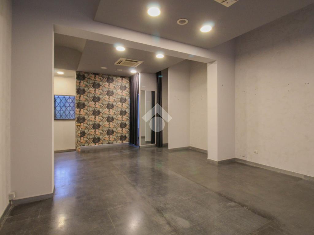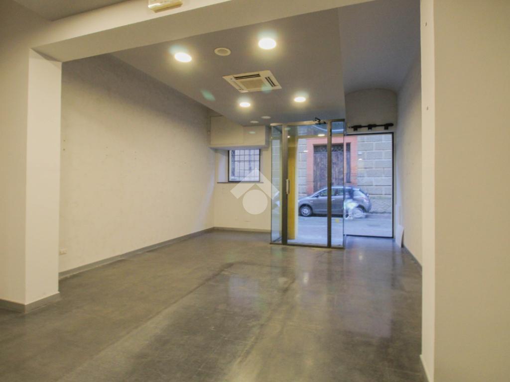 La soluzione proposta in locazione misura circa 45 metri quadrati ed è situata al piano terra di un edificio che si sviluppa su tre livelli e presenta ulteriori 45 metri quadrati adibiti a cantina situata al piano seminterrato. Il locale si presenta come un ampio open space reso particolarmente luminoso grazie alla presenza di una vetrina con affaccio esterno. L'immobile è provvisto dell’impianto elettrico, quello di illuminazione, di riscaldamento e condizionamento. A completare la soluzione è la presenza di un servizio igienico privato.
