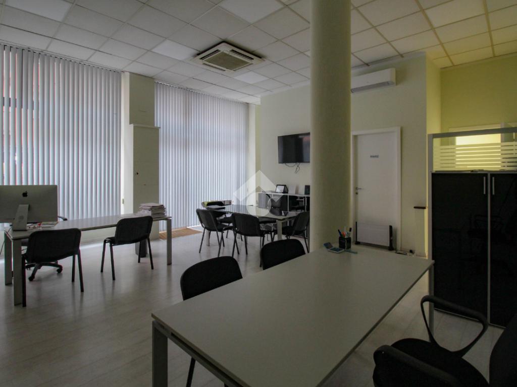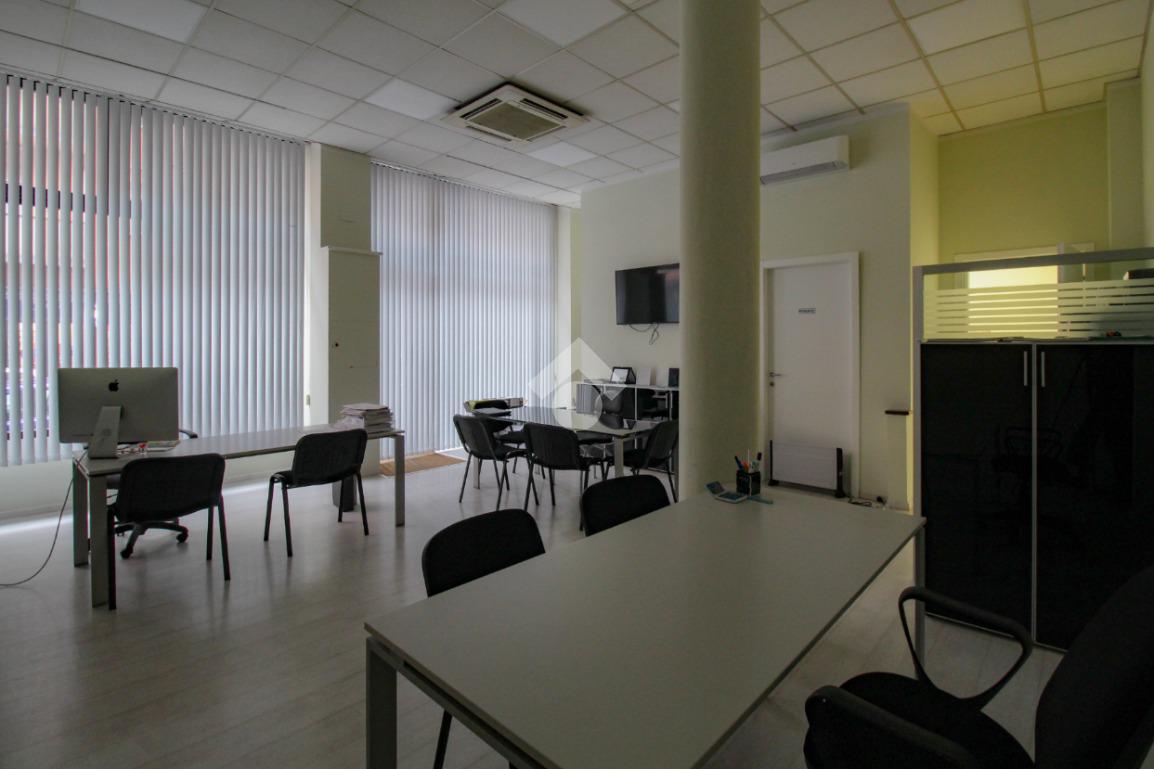 La struttura proposta in locazione ha una superficie utile di circa 50 metri quadrati ed è situata al piano terra di un edificio che si sviluppa su sei piani complessivi. Il locale si presenta come un ampio open space reso particolarmente luminoso grazie alla presenza di due vetrine con affaccio esterno. L'immobile è provvisto dell’impianto elettrico, di illuminazione, di riscaldamento e condizionamento. A completare la soluzione è la presenza di un servizio igienico privato.
