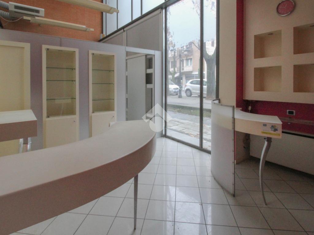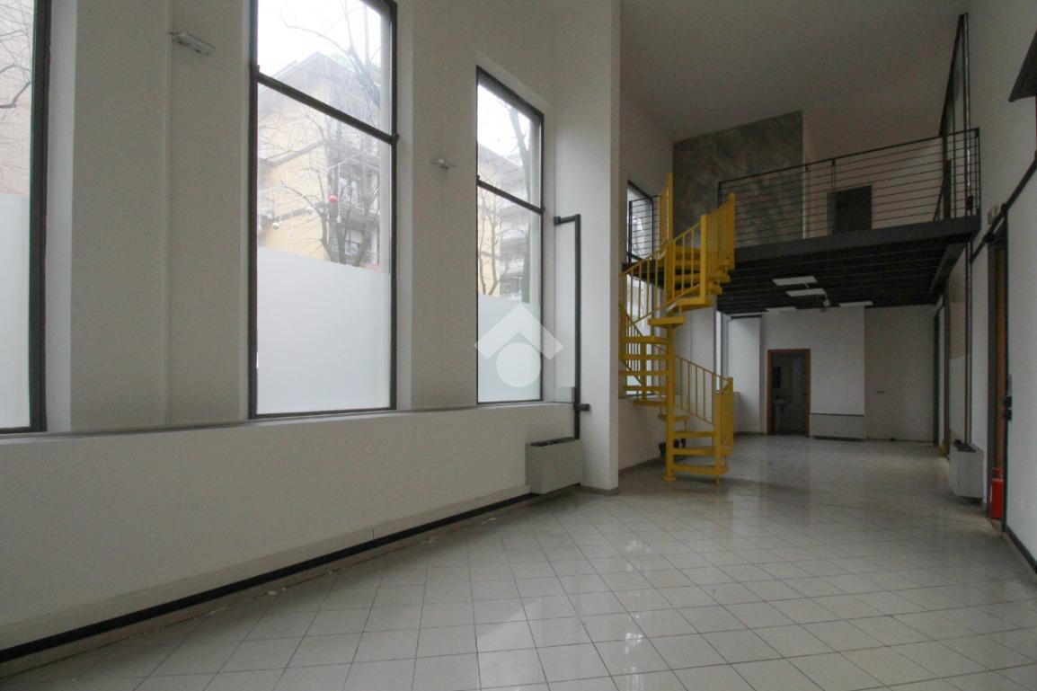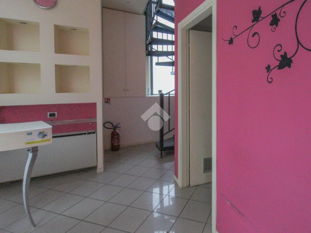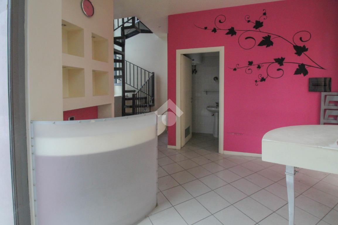 La struttura proposta in vendita è situata al piano terra di un edificio sviluppato su due livelli e dispone di una superficie calpestabile di circa 145 metri quadrati, di cui 70 metri quadrati di soppalco. Internamente, l'immobile si presenta come suddiviso in sette stanze rese particolarmente luminose grazie alla presenza di undici vetrine con affaccio esterno. Il locale è dotato dell'impianto elettrico, di illuminazione, di riscaldamento e di condizionamento. A completare la soluzione è la presenza di tre servizi igienici privati.