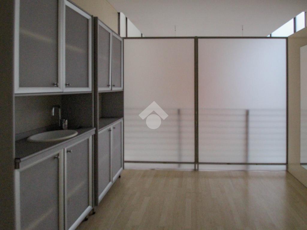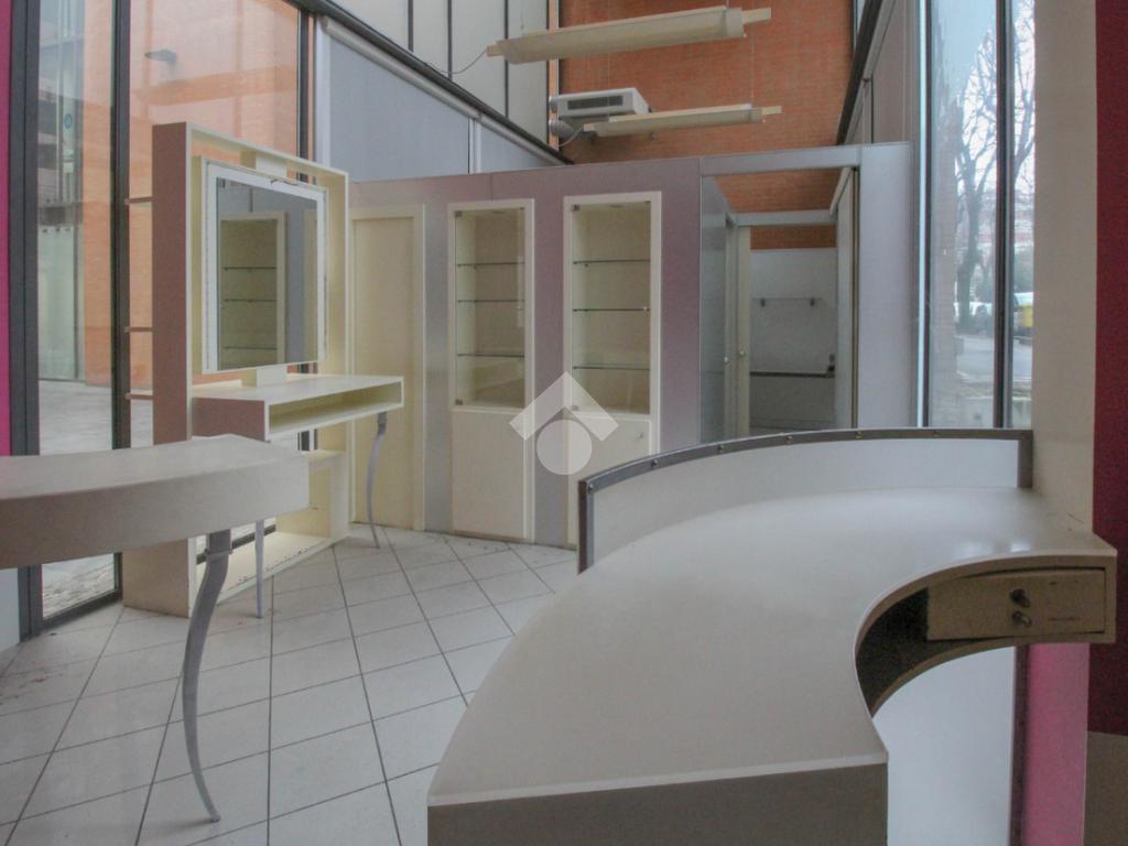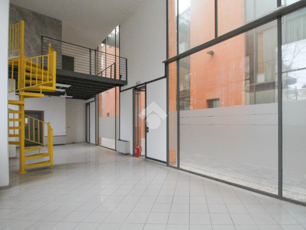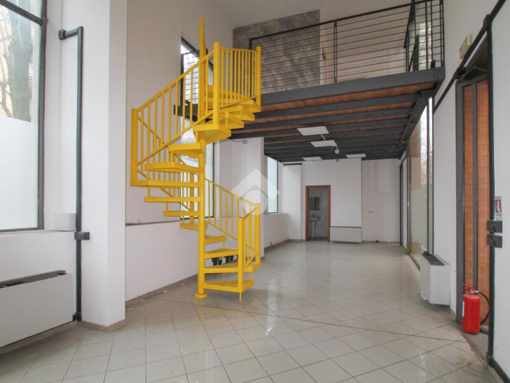 La struttura proposta in vendita è situata al piano terra di un edificio sviluppato su due livelli e dispone di una superficie calpestabile di circa 145 metri quadrati, di cui 70 metri quadrati di soppalco. Internamente, l'immobile si presenta come suddiviso in sette stanze rese particolarmente luminose grazie alla presenza di undici vetrine con affaccio esterno. Il locale è dotato dell'impianto elettrico, di illuminazione, di riscaldamento e di condizionamento. A completare la soluzione è la presenza di tre servizi igienici privati.