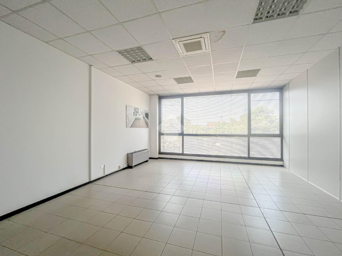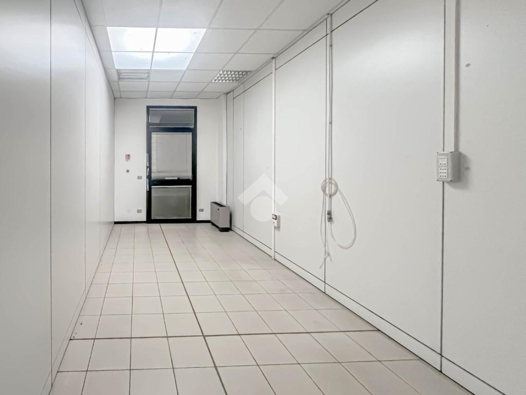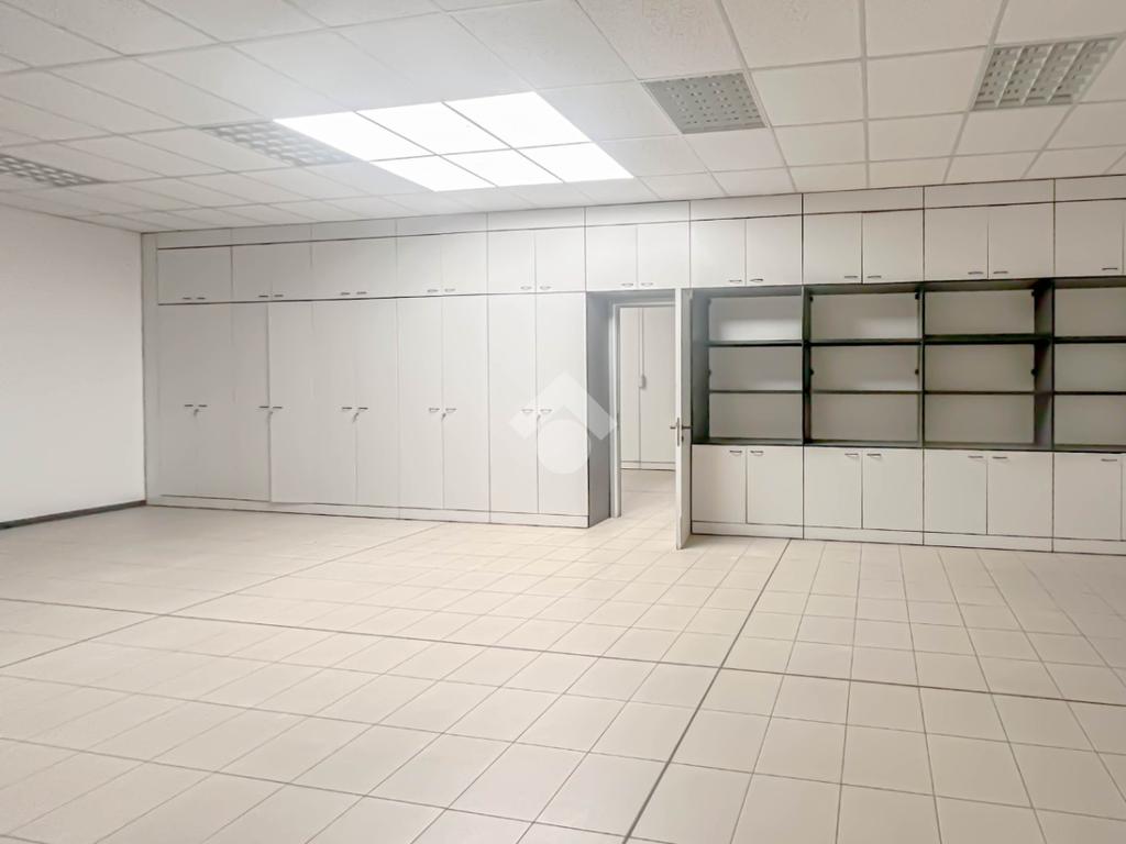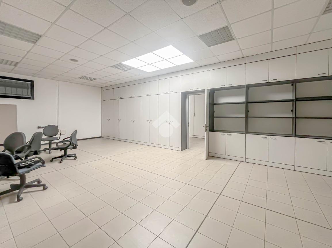 Proponiamo in locazione un ufficio di circa 200 metri quadrati, situato al piano terra di un edificio disposto su due livelli.
