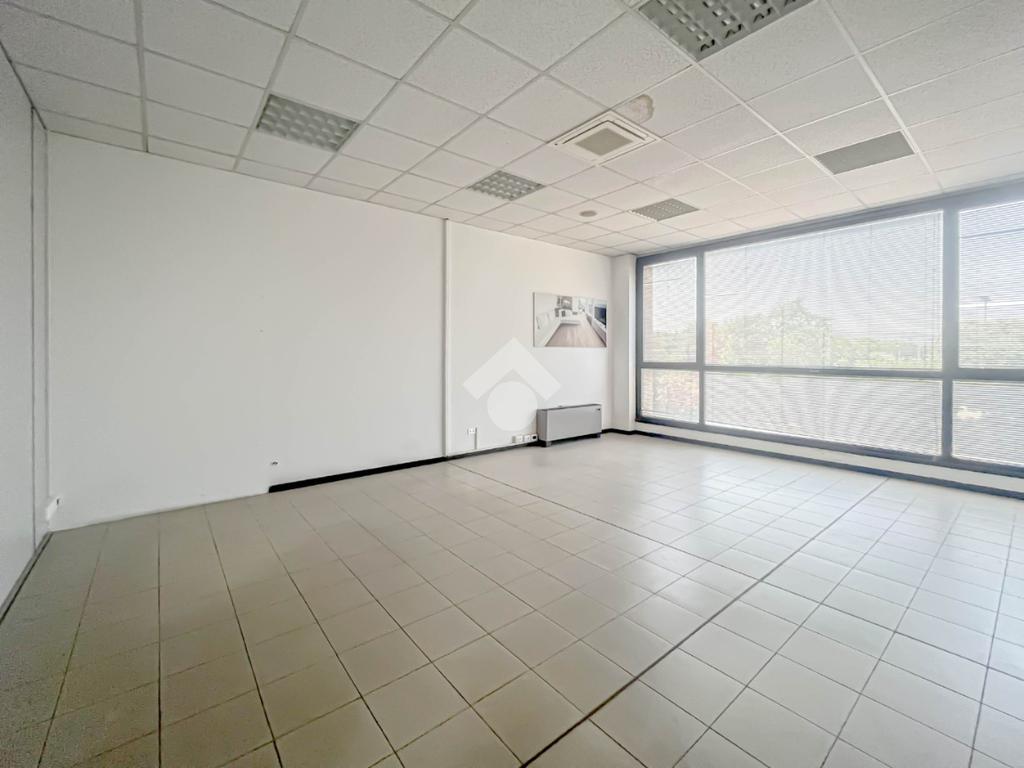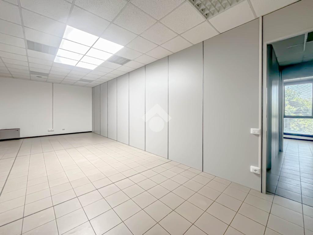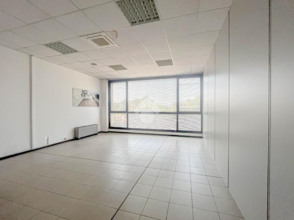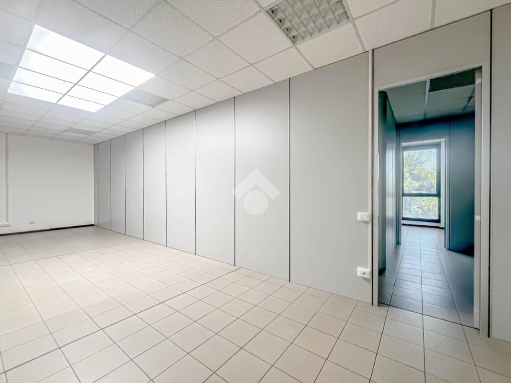 Proponiamo in locazione un ufficio di circa 200 metri quadrati, situato al piano terra di un edificio disposto su due livelli.