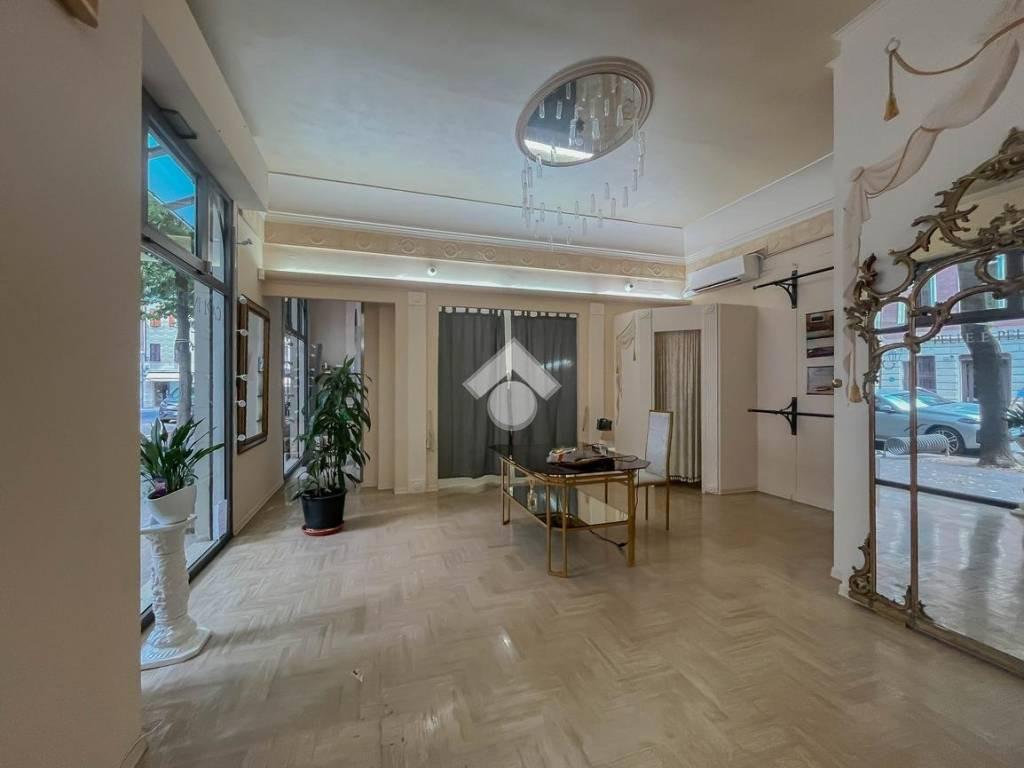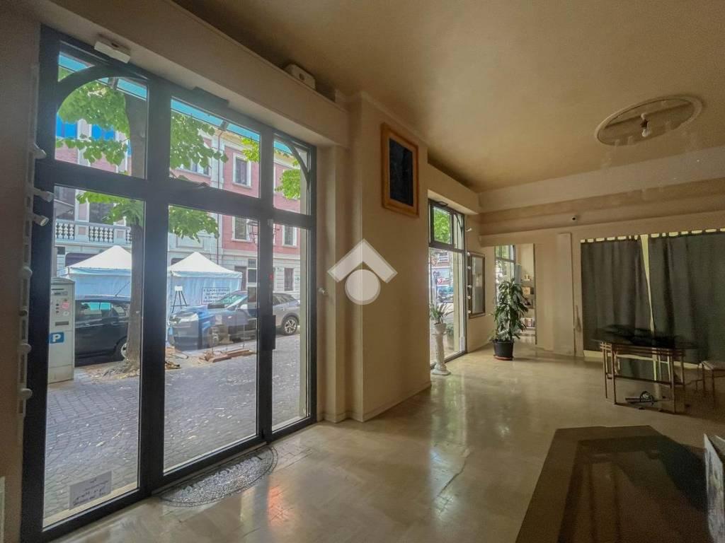 L’immobile misura 110 metri quadrati ed è situato al piano terra di un edificio che si sviluppa su quattro livelli. La soluzione è attualmente divisa in due locali ed è dotata di un servizio igienico privato. L'ambiente è particolarmente luminoso grazie alla presenza di due grandi vetrine. L’ufficio è dotato dell’impianto di riscaldamento e condizionamento. Inoltre, possiede l’impianto elettrico, quello di illuminazione, il sistema di allarme e la connessione ad internet.