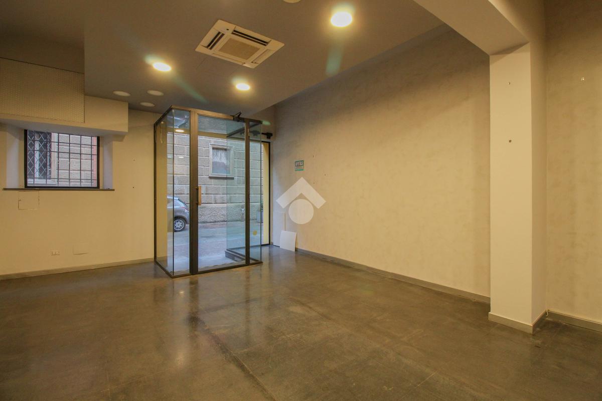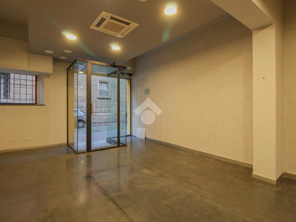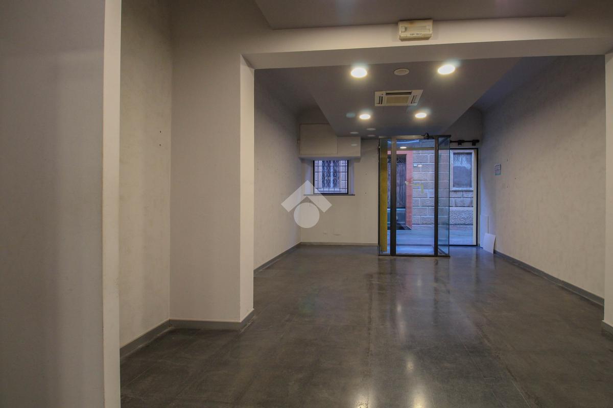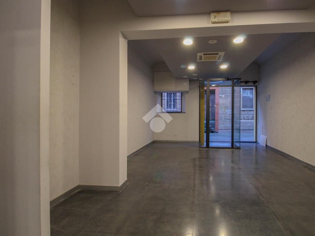 La soluzione proposta in locazione misura circa 45 metri quadrati ed è situata al piano terra di un edificio che si sviluppa su tre livelli e presenta ulteriori 45 metri quadrati adibiti a cantina situata al piano seminterrato. Il locale si presenta come un ampio open space reso particolarmente luminoso grazie alla presenza di una vetrina con affaccio esterno. L'immobile è provvisto dell’impianto elettrico, quello di illuminazione, di riscaldamento e condizionamento. A completare la soluzione è la presenza di un servizio igienico privato.