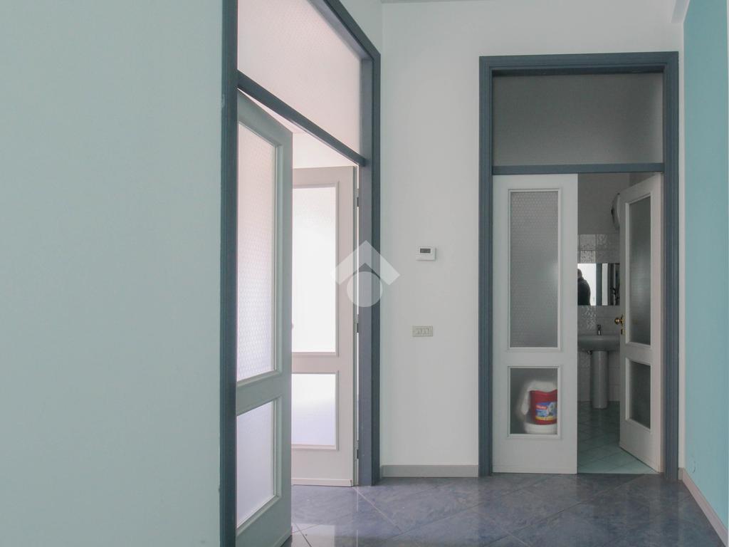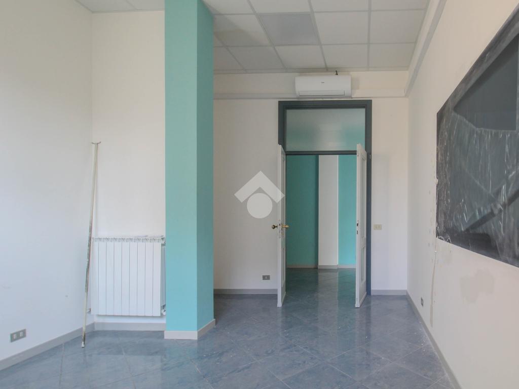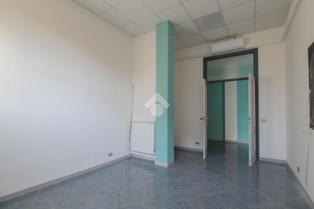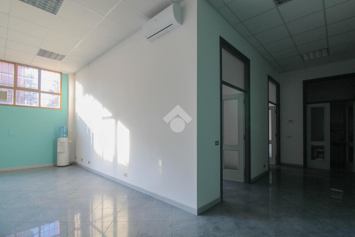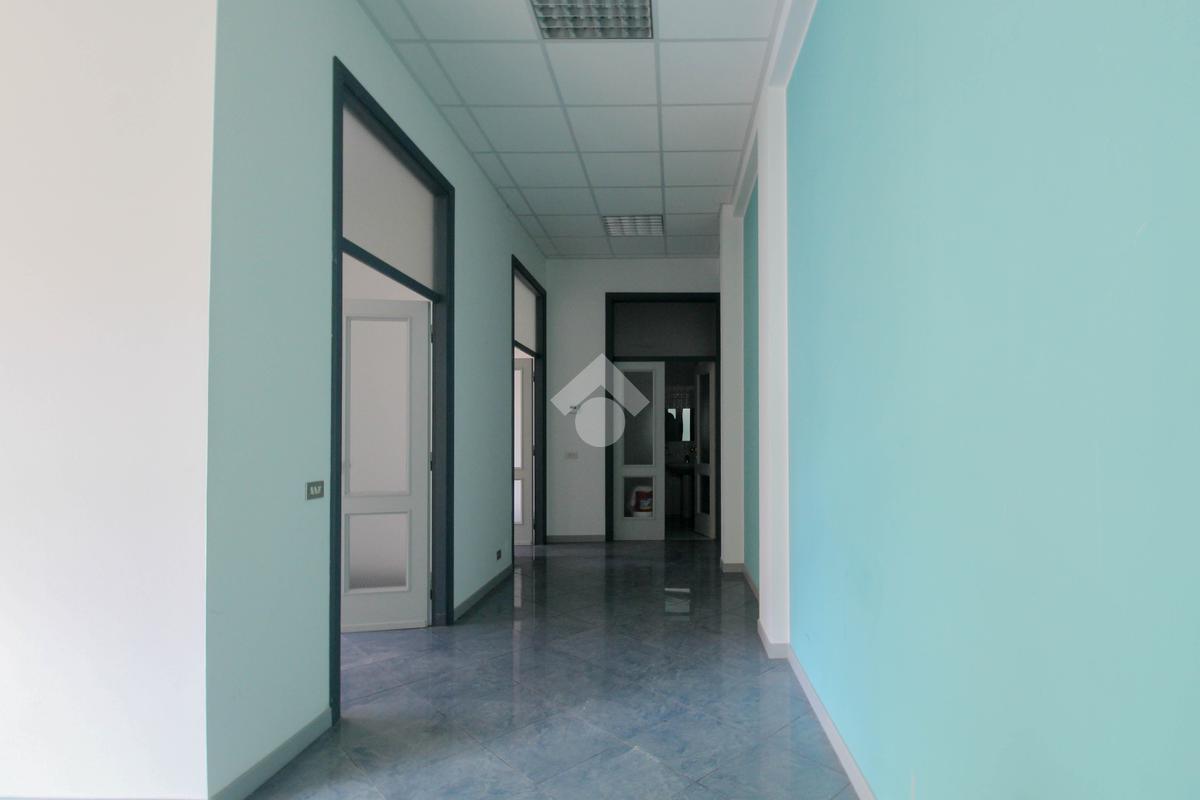 La struttura proposta in locazione si sviluppa su di una superficie calpestabile di circa 80 metri quadrati disposti al piano terra di un edificio sviluppato su quattro livelli complessivi. Internamente l'immobile si presenta come suddiviso in tre stanze rese particolarmente luminose grazie alla presenza di tre vetrine con affaccio esterno. Il locale è completo degli impianti elettrico, di illuminazione, di riscaldamento e di condizionamento. A completare la soluzione è la presenza di un servizio igienico privato.