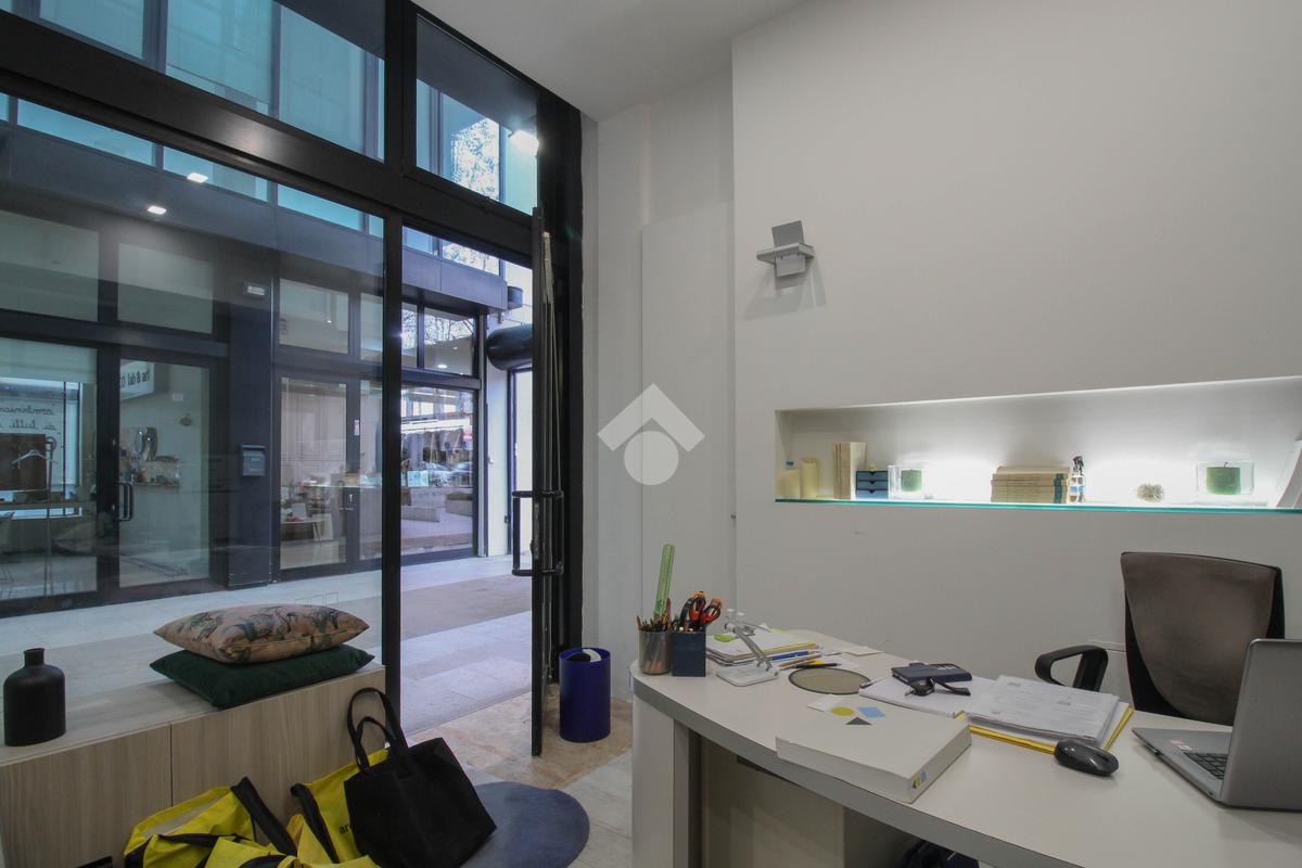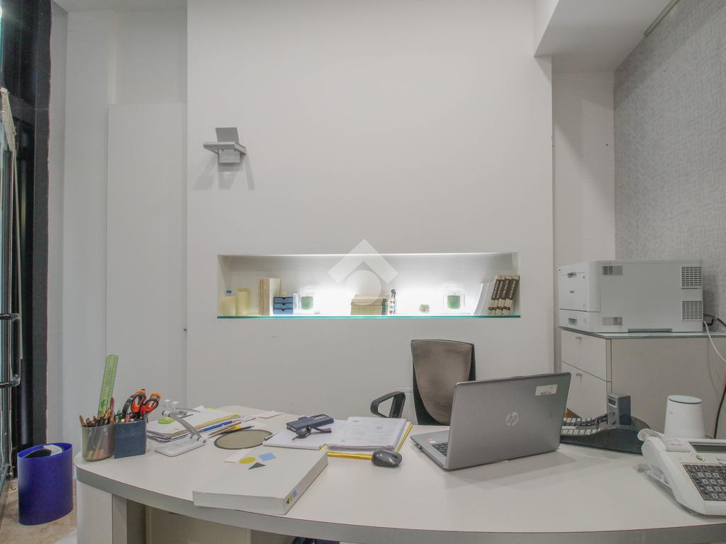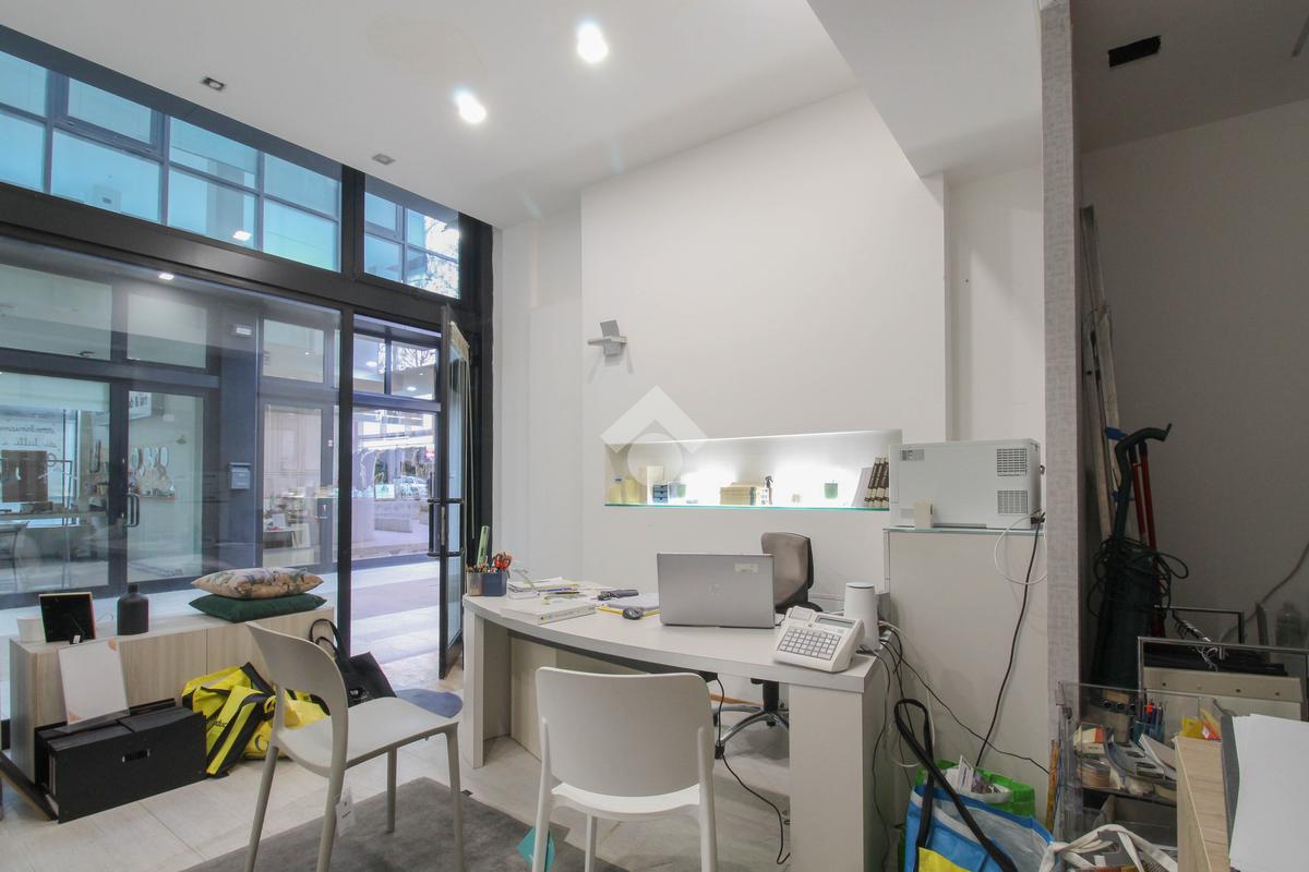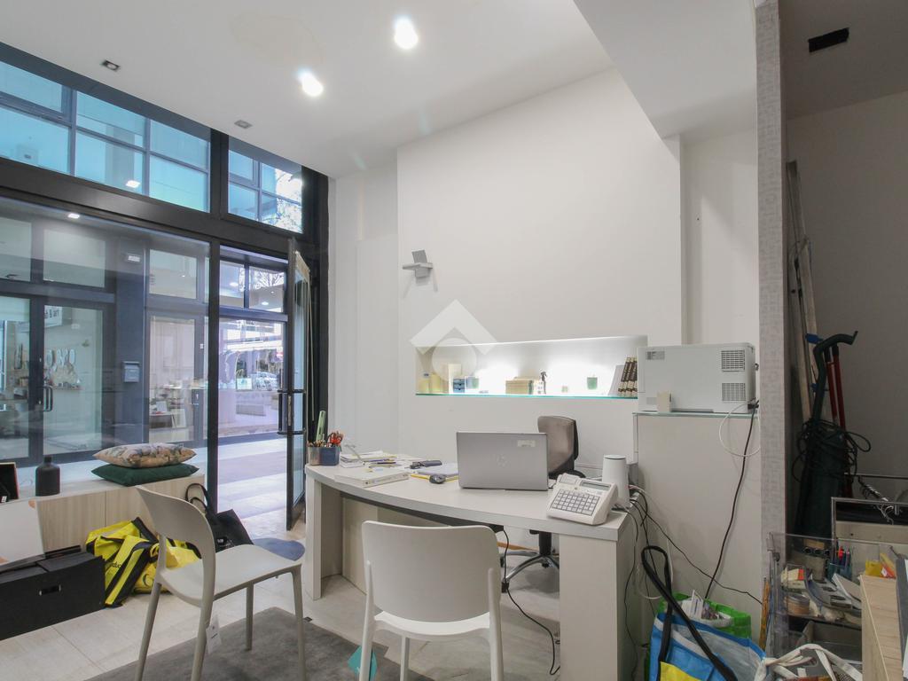 La soluzione proposta in locazione misura circa 30 metri quadrati ed è situata al piano terra di un edificio che si sviluppa su quattro livelli. Internamente il locale si presenta come un ampio open space reso particolarmente luminoso grazie alla presenza di una vetrina con affaccio esterno. L'immobile è provvisto dell’impianto elettrico, di illuminazione, di riscaldamento e condizionamento. A completare la soluzione è la presenza di un servizio igienico privato a norma disabili esterno all'unità esterno all'unità.