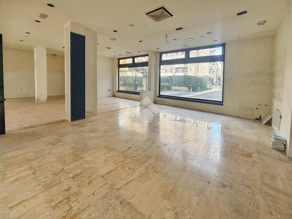 La soluzione proposta in locazione presenta una superficie utile circa 40 metri quadrati ed è situata al piano terra di un edificio che si sviluppa su sei piani complessivi. Internamente il locale si presenta come un ampio open space reso particolarmente luminoso grazie alla presenza di quattro vetrine con affaccio esterno. L'immobile è provvisto dell’impianto elettrico, di illuminazione, di riscaldamento e condizionamento. A completare la soluzione è la presenza di un servizio igienico privato a norma disabili.