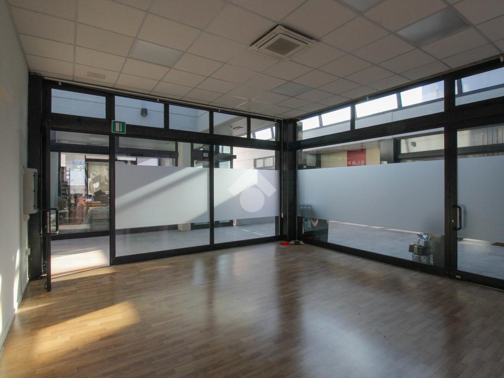 La struttura proposta in vendita dispone di una superficie complessiva di circa 55 metri quadrati disposti al primo piano di un edificio sviluppato su due piani. Internamente, il negozio si presenta come un ampio open space, reso particolarmente luminoso grazie alla presenza di tre vetrine con affaccio su strada. L'immobile è dotato degli impianti elettrico, di illuminazione, di riscaldamento e condizionamento, oltre al sistema di antincendio. A completare la soluzione è la presenza di un servizio igienico privato a norma disabili.