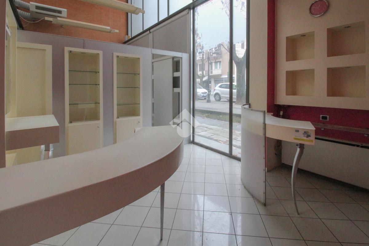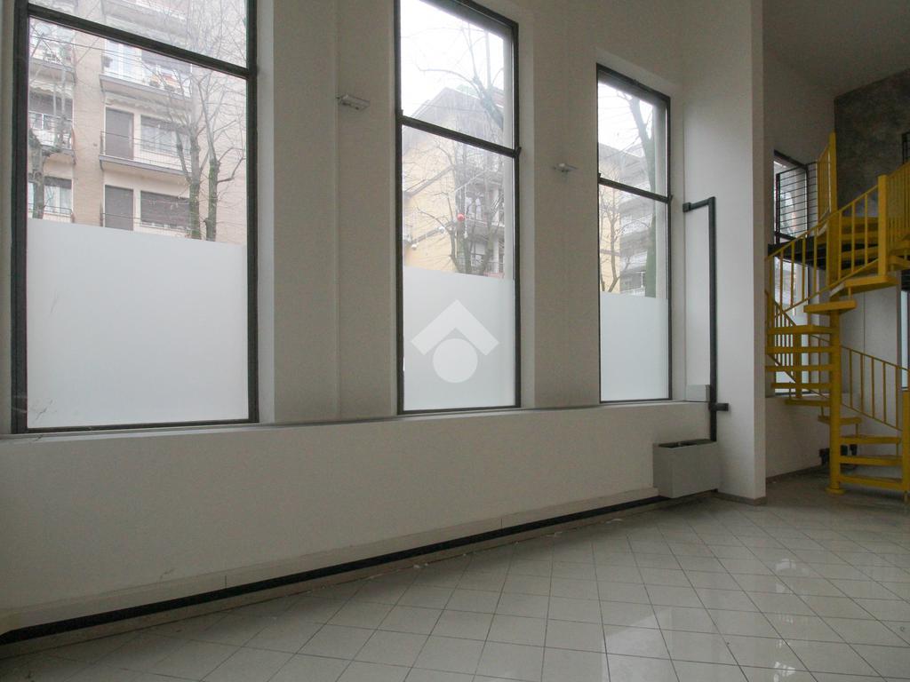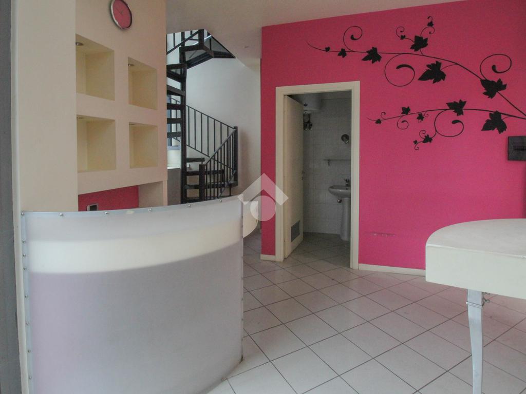 La struttura proposta in vendita è situata al piano terra di un edificio sviluppato su due livelli e dispone di una superficie calpestabile di circa 145 metri quadrati, di cui 70 metri quadrati di soppalco. Internamente, l'immobile si presenta come suddiviso in sette stanze rese particolarmente luminose grazie alla presenza di undici vetrine con affaccio esterno. Il locale è dotato dell'impianto elettrico, di illuminazione, di riscaldamento e di condizionamento. A completare la soluzione è la presenza di tre servizi igienici privati.