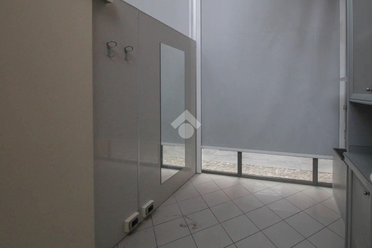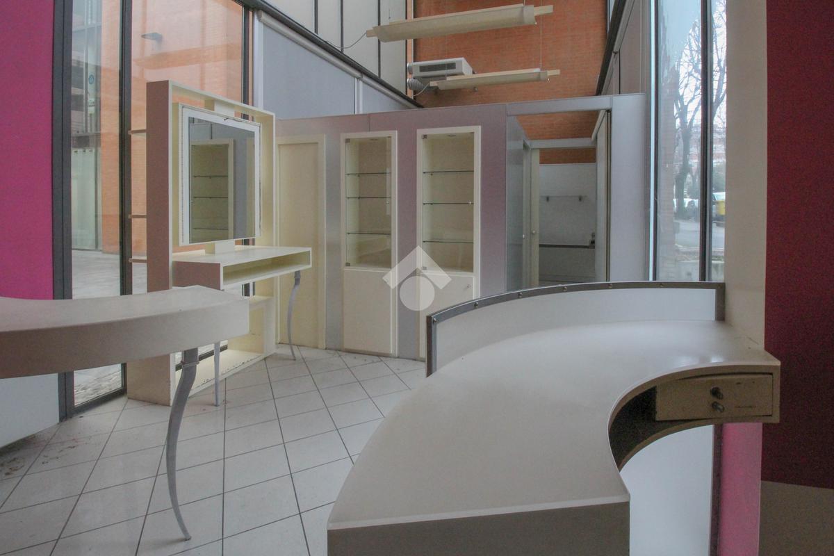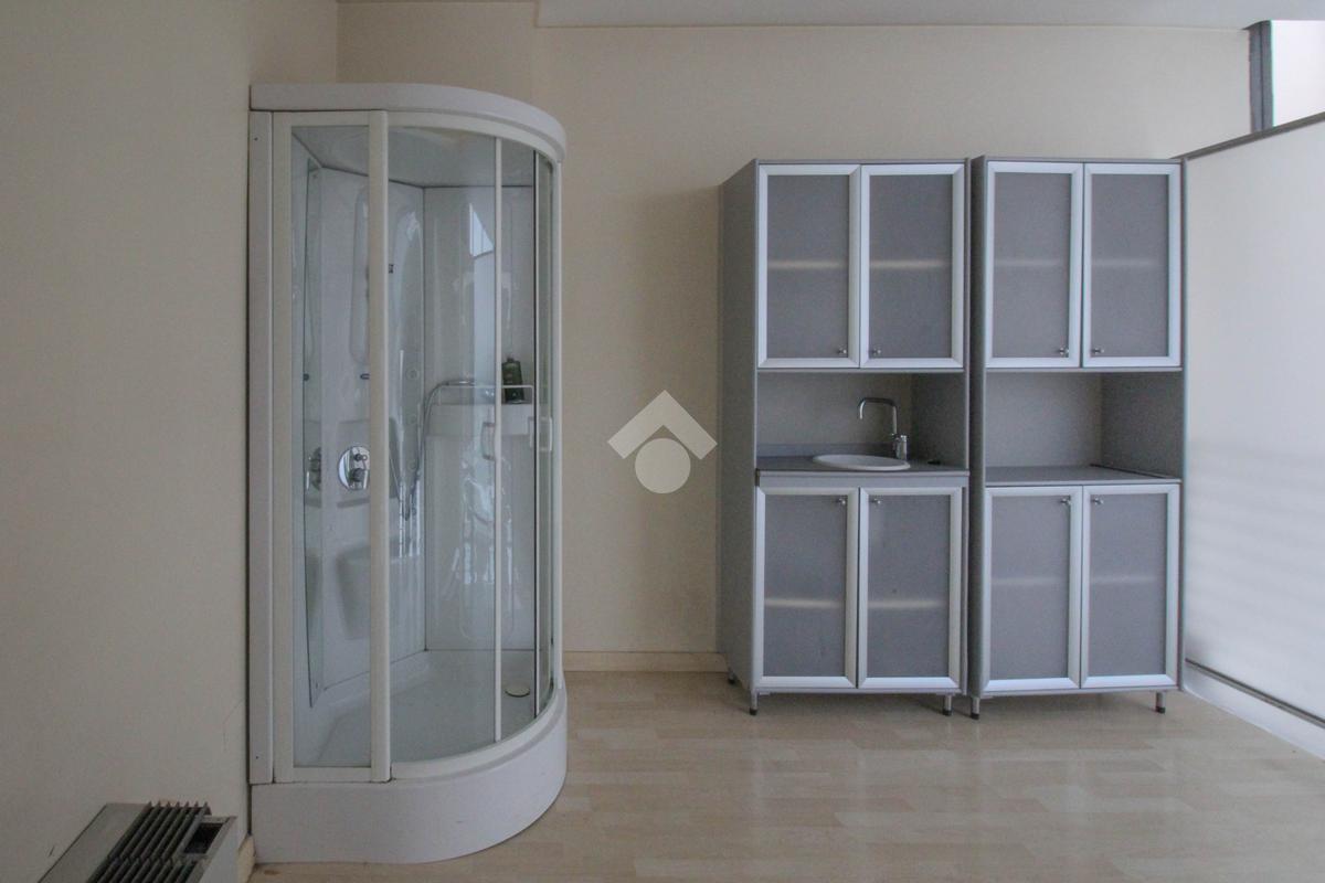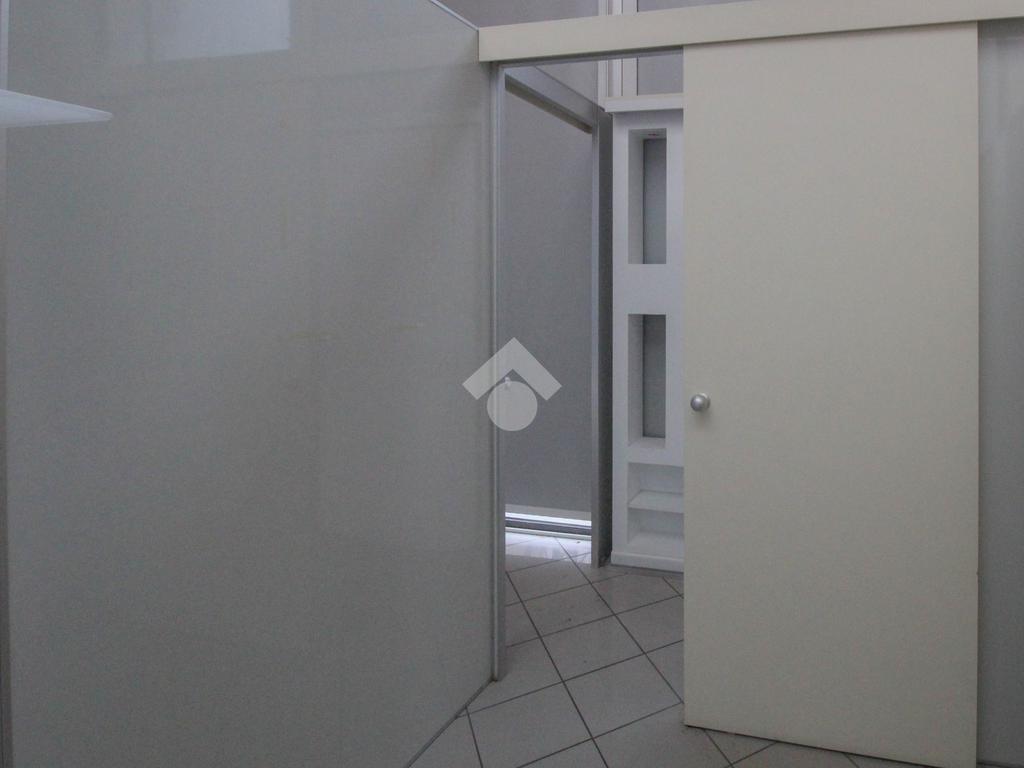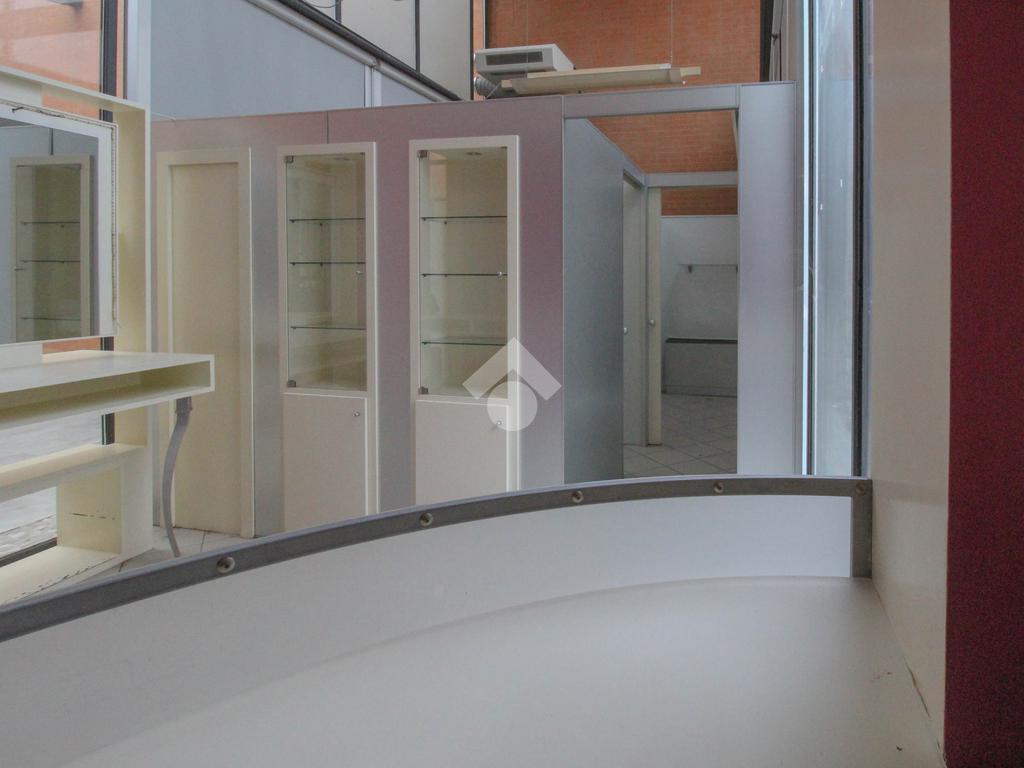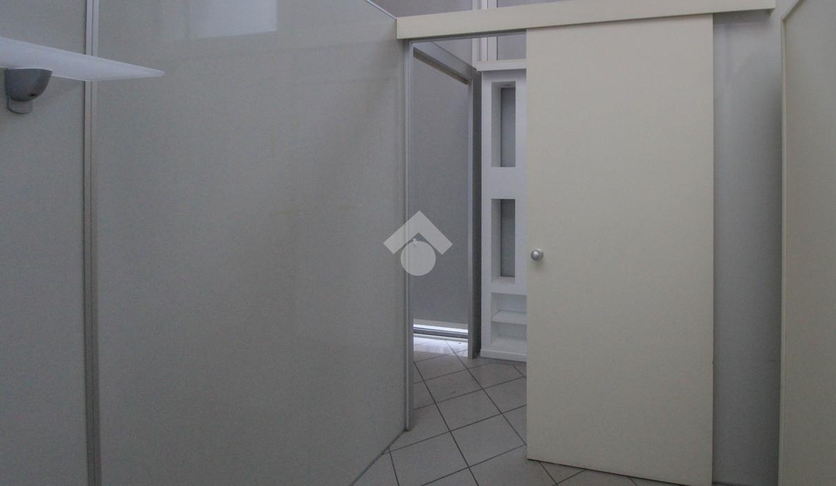 La struttura proposta in vendita è situata al piano terra di un edificio sviluppato su due livelli e dispone di una superficie calpestabile di circa 80 metri quadrati, di cui 25 metri quadrati di soppalco. Internamente, l'immobile si presenta come suddiviso in quattro stanze rese particolarmente luminose grazie alla presenza di quattro vetrine con affaccio esterno. Il locale è dotato dell'impianto elettrico, di illuminazione, di riscaldamento e di condizionamento. A completare la soluzione è la presenza di un servizio igienico privato.