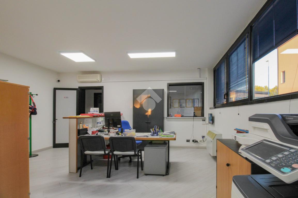 Il capannone proposto in locazione ha una superficie complessiva di circa 750 metri quadrati posizionati al piano terra, di cui 100 metri quadrati adibiti ad uffici al piano primo. L'accesso all'area interna avviene tramite due portoni di 4,50 metri di altezza. Internamente, l'immobile è disposto in un’unica campata suddivisa in tre locali con un'altezza massima sfruttabile di circa 5,50 metri e un'altezza sottotrave di circa 5,50 metri. Il locale è dotato degli impianti elettrico, di illuminazione, di riscaldamento e di condizionamento ed è presente un carroponte con una portata massima di 5,00 tonnellate. A completare la soluzione è la presenza di due servizi igienici privati provvisti di docce e spogliatoi. Per l’entrata e l’uscita dei mezzi, inoltre, sono presenti due accessi carrai.