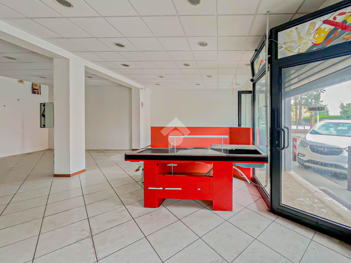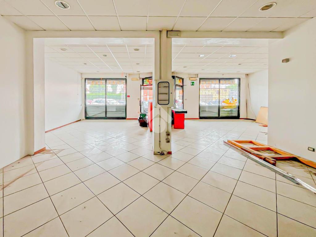 La soluzione proposta in locazione dispone di una superficie calpestabile di circa 110 metri quadrati, ed è situata al piano terra di una palazzina strutturata su due piani. Internamente, il locale è suddiviso in due stanze rese particolarmente luminose grazie alla presenza di due vetrine. L'immobile è dotato dell’impianto elettrico e di illuminazione; è presente inoltre la predisposizione per l’impianto di condizionamento e riscaldamento. A completare la soluzione è la presenza di un servizio igienico privato.