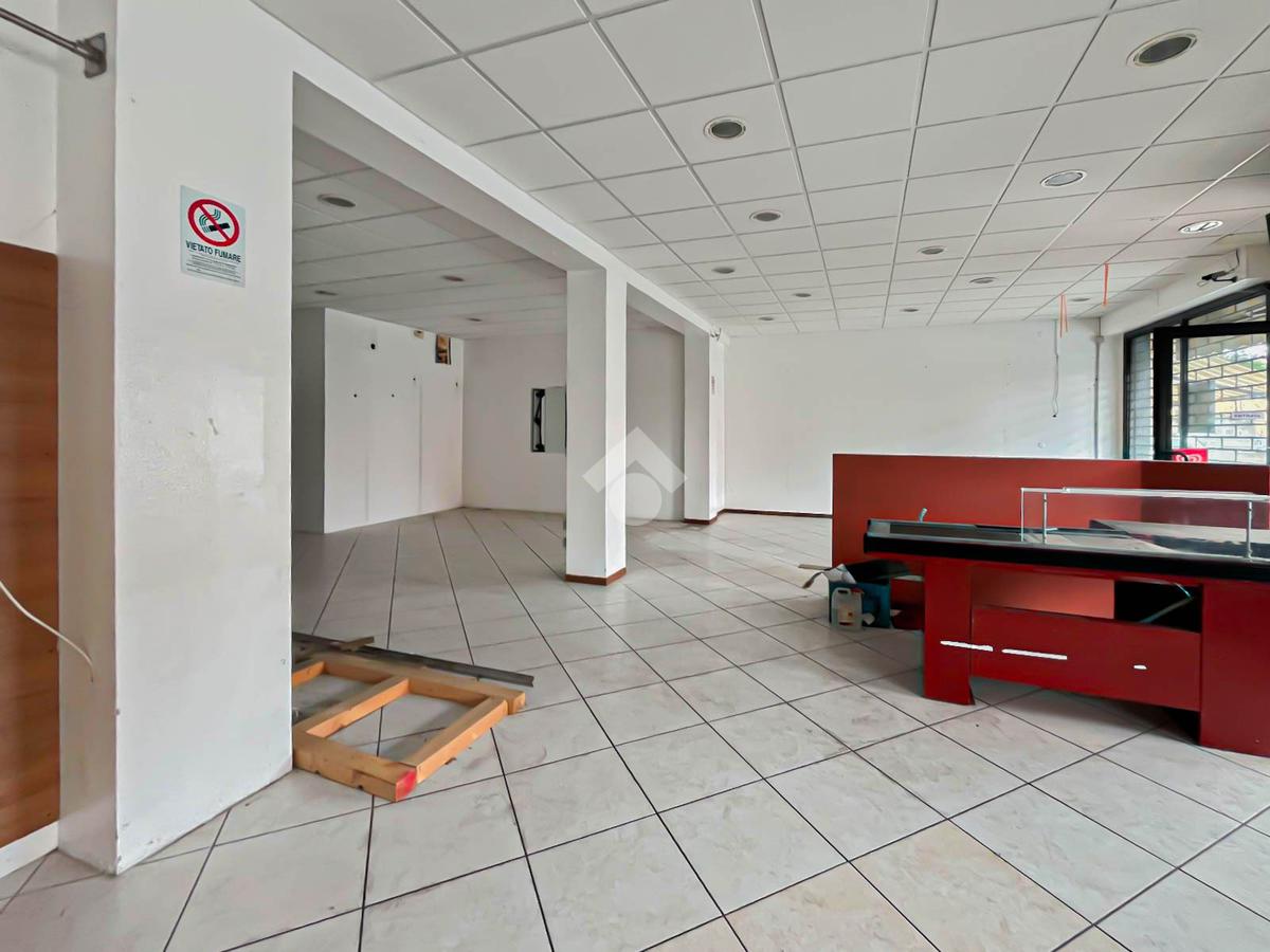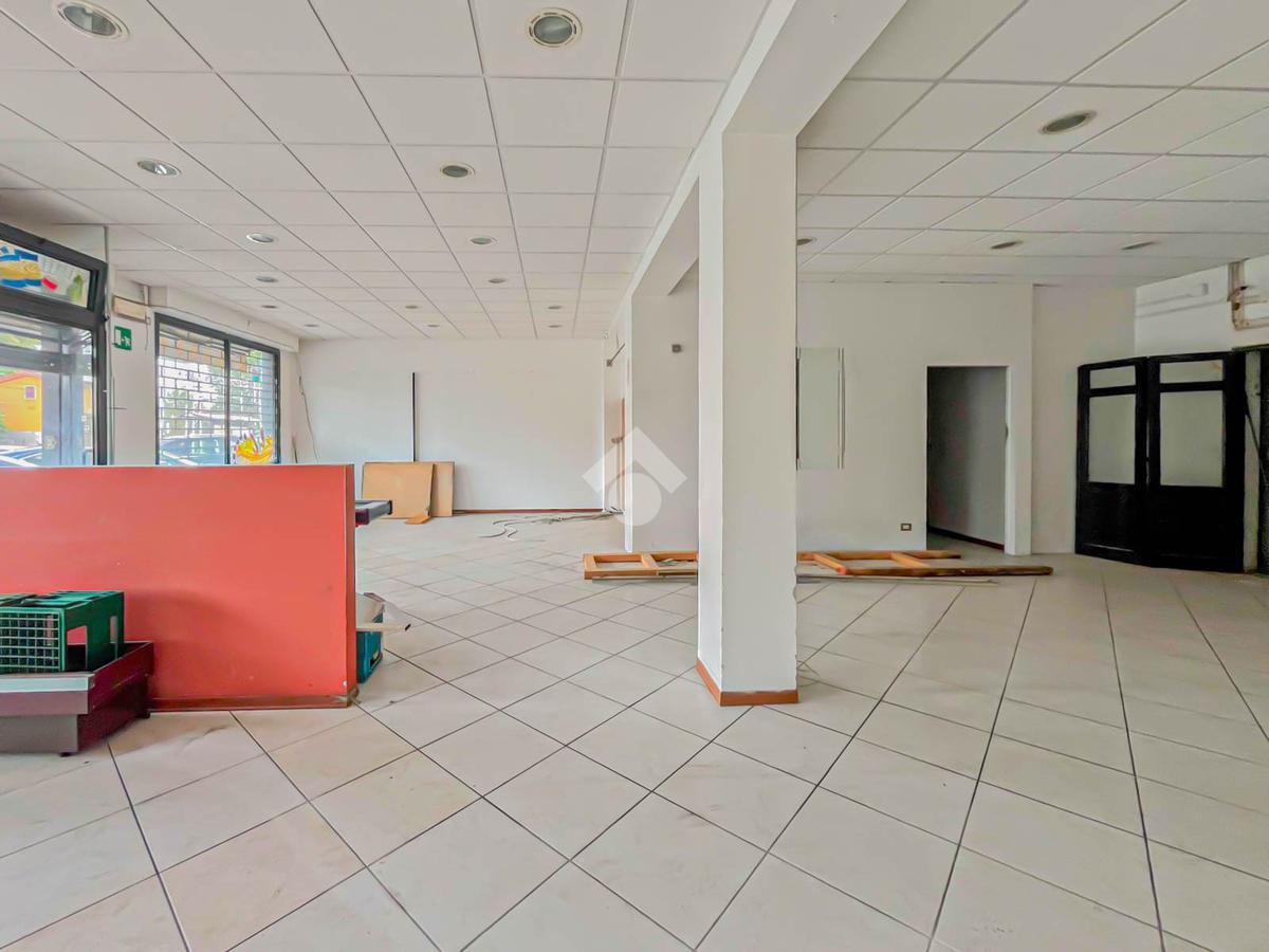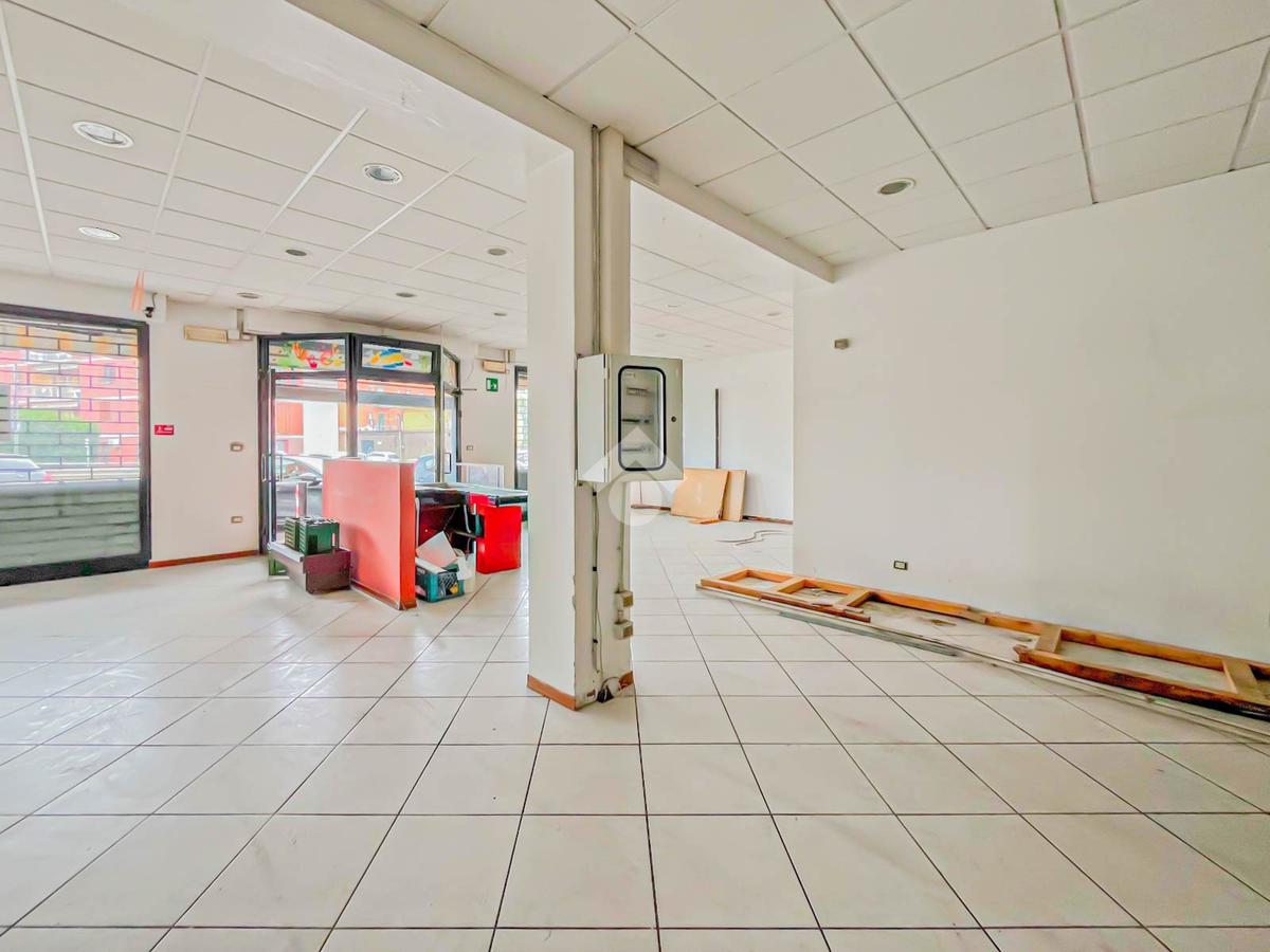 La soluzione proposta in locazione dispone di una superficie calpestabile di circa 110 metri quadrati, ed è situata al piano terra di una palazzina strutturata su due piani. Internamente, il locale è suddiviso in due locali resi particolarmente luminose grazie alla presenza di due vetrine. L'immobile è dotato dell’impianto elettrico e di illuminazione; è presente inoltre la predisposizione per l’impianto di condizionamento e riscaldamento. A completare la soluzione è la presenza di un servizio igienico privato.