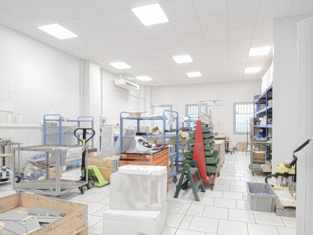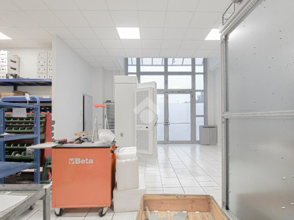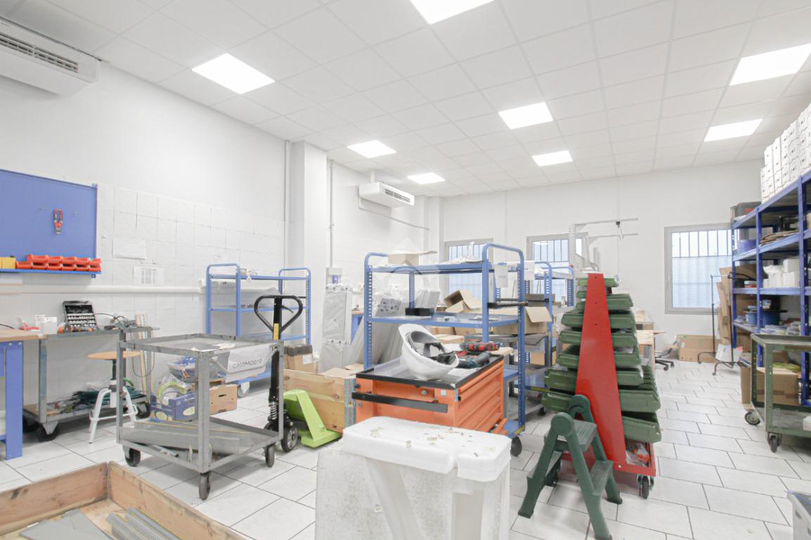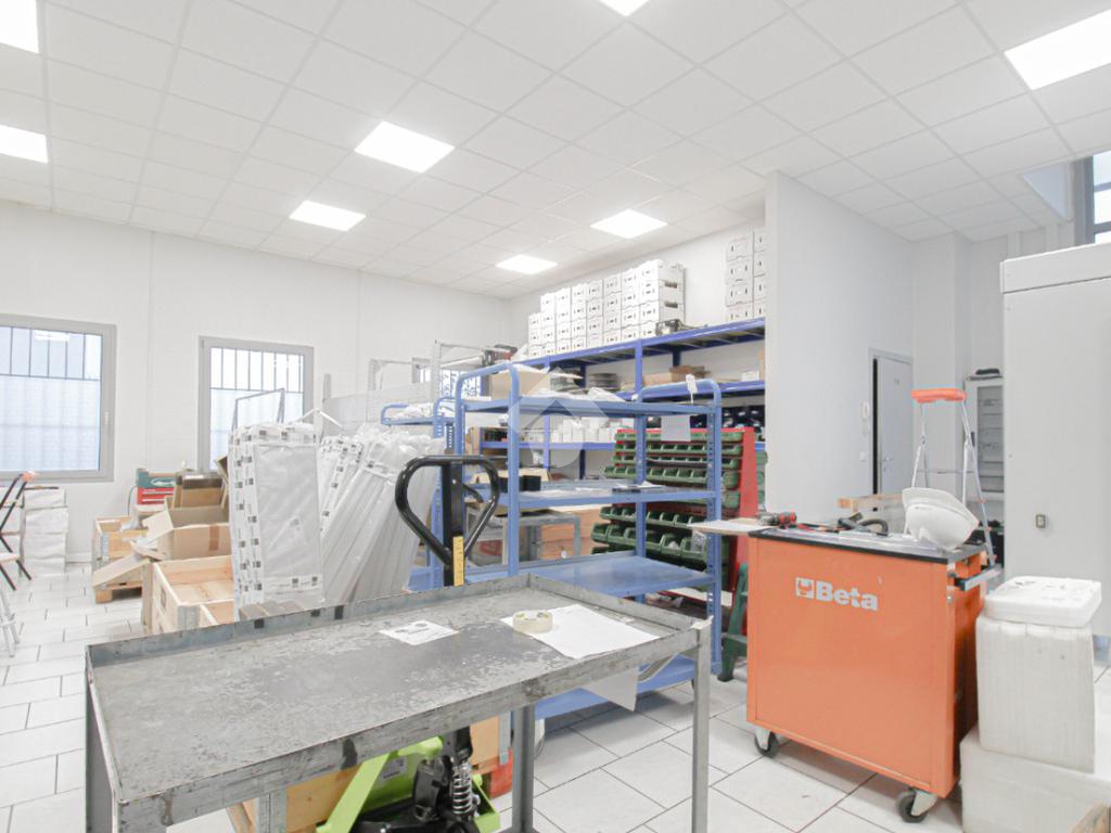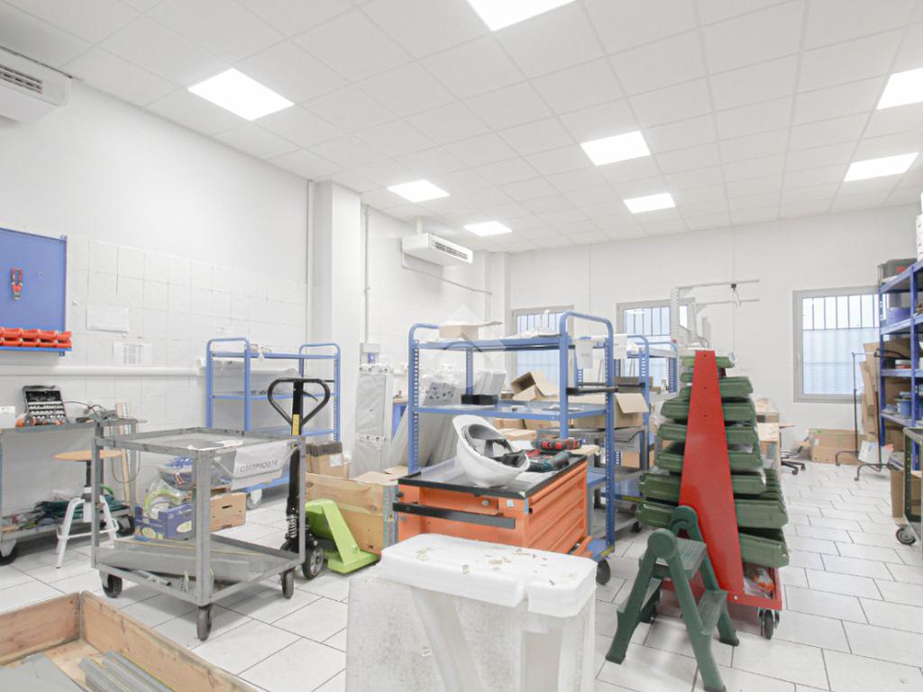 L’immobile è dotato di due accessi carrai. L’accesso all’area interna avviene tramite un portone con altezza di 2,5 metri. L’immobile è internamente suddiviso in tre locali ed è dotato di impianto elettrico e di illuminazione, oltre a impianto di riscaldamento e condizionamento caldo/freddo. A completare la soluzione è presente un servizio igienico privato, dotato di docce e locale spogliatoio.