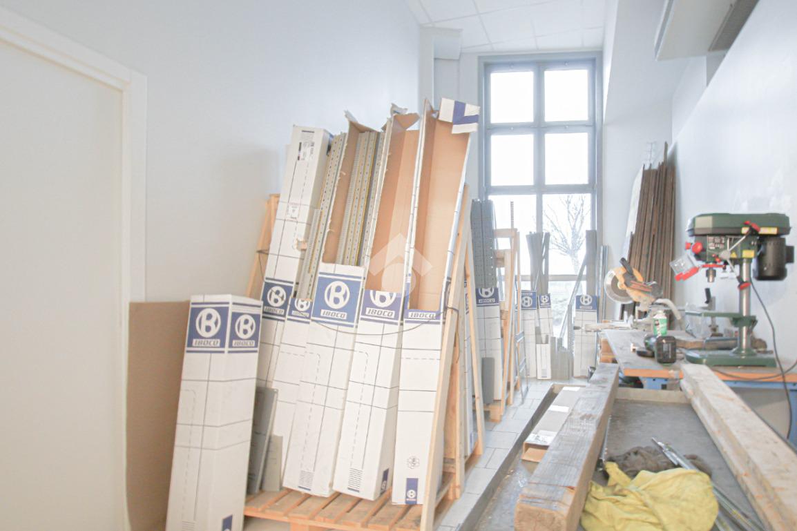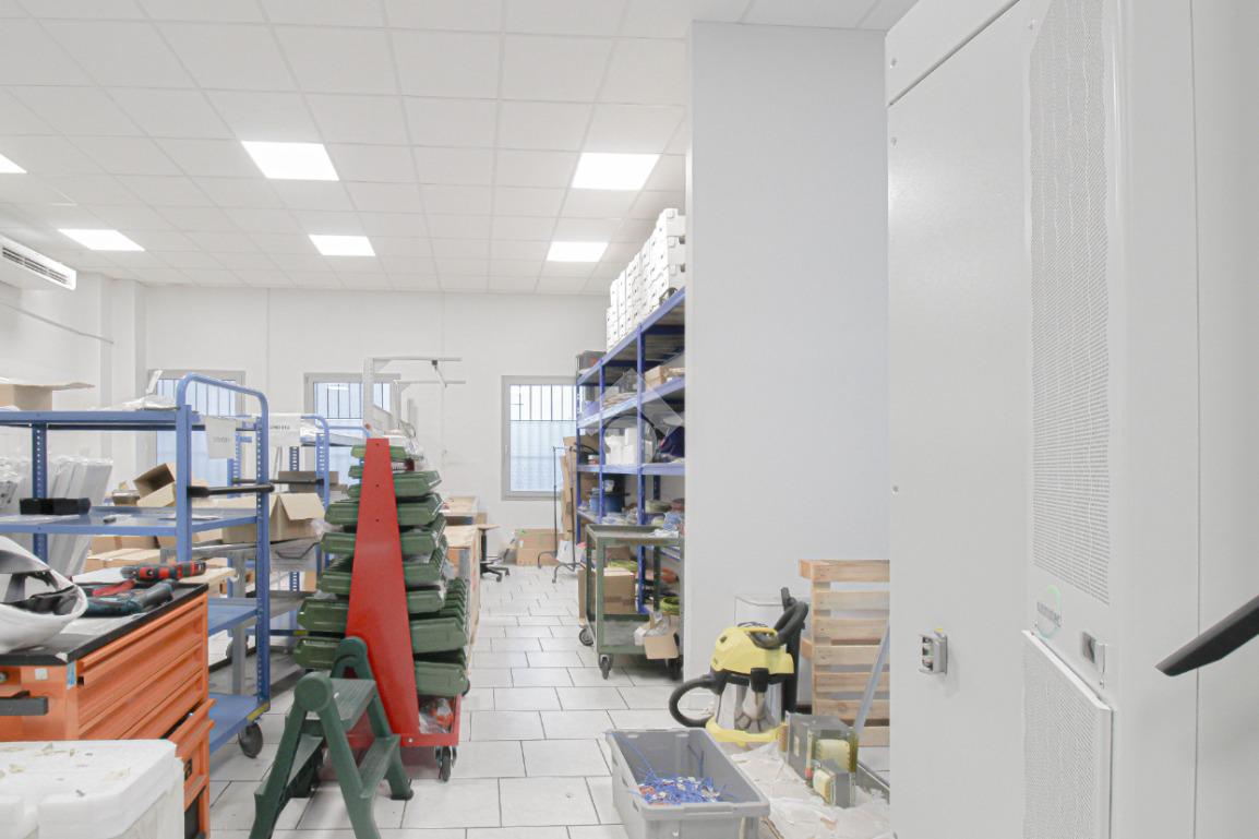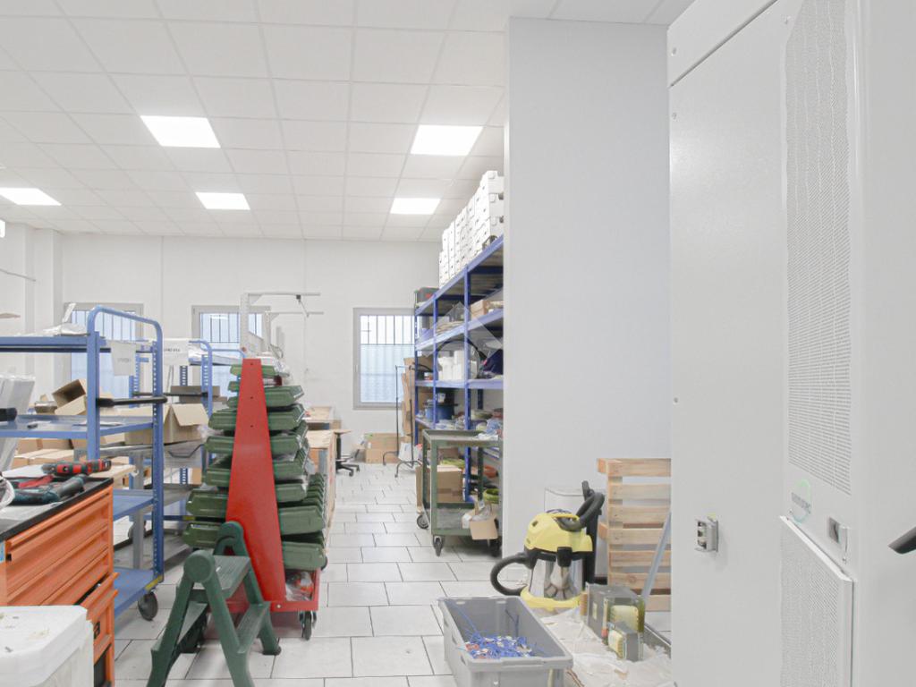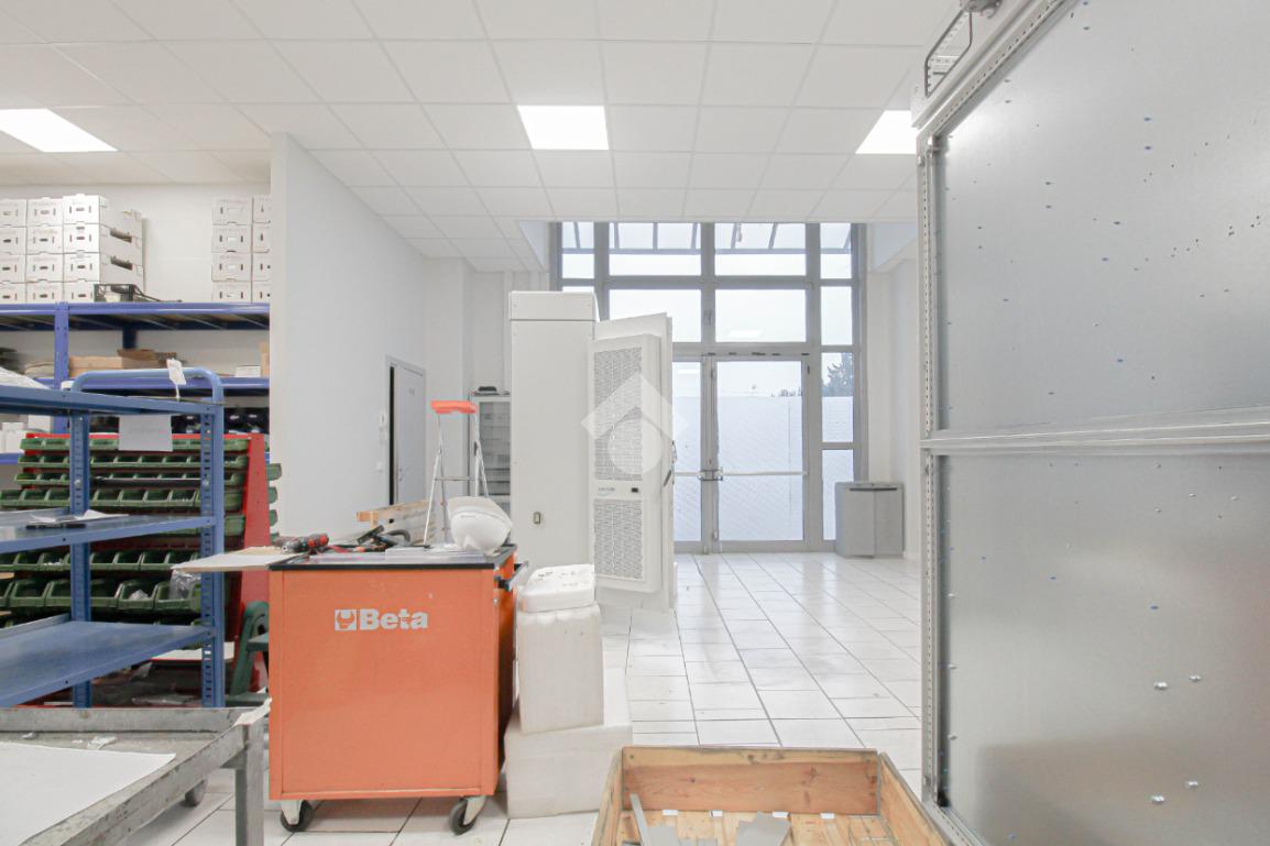L’immobile è dotato di due accessi carrai. L’accesso all’area interna avviene tramite un portone con altezza di 2,5 metri. L’immobile è internamente suddiviso in tre locali ed è dotato di impianto elettrico e di illuminazione, oltre a impianto di riscaldamento e condizionamento caldo/freddo. A completare la soluzione è presente un servizio igienico privato, dotato di docce e locale spogliatoio.