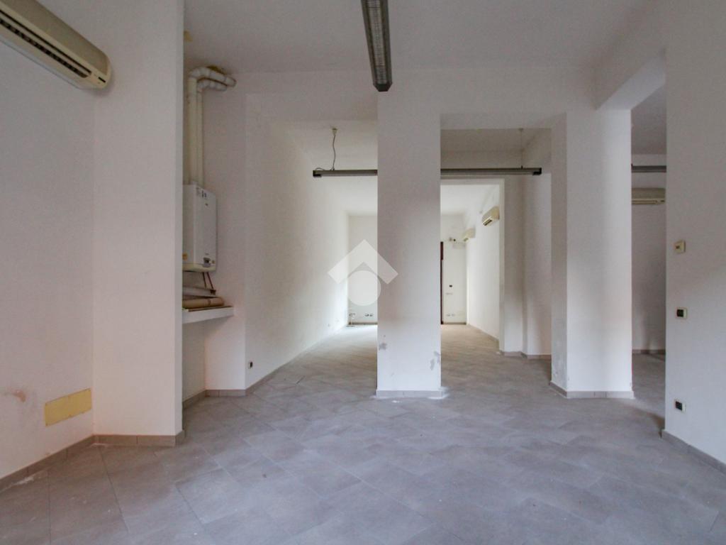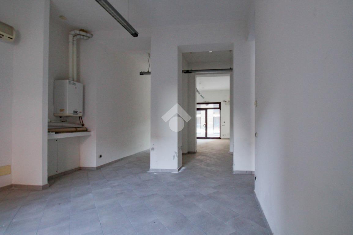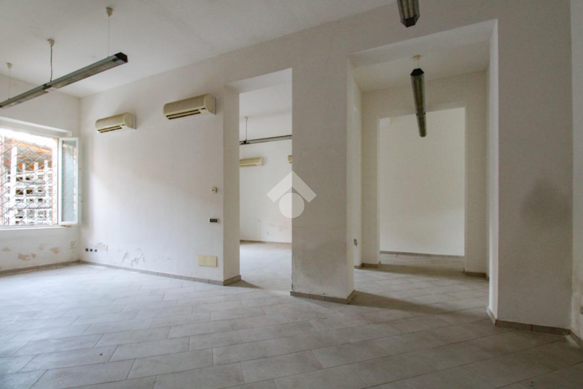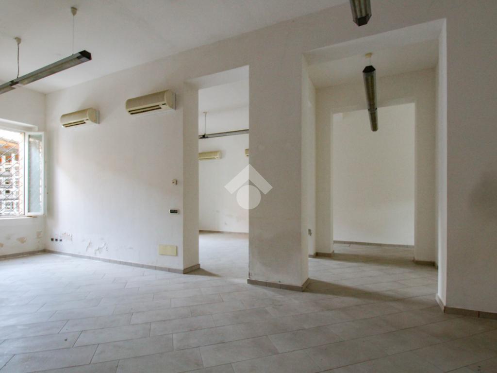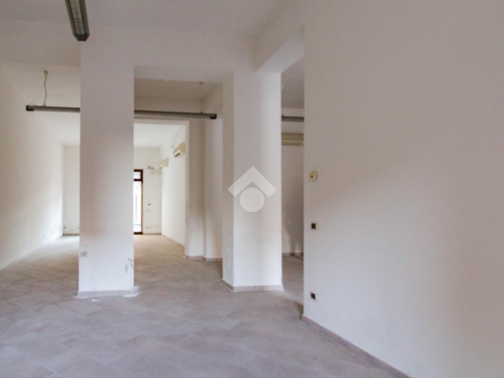 La soluzione si sviluppa su di una superficie commerciale di circa 130 metri quadrati disposti su un unico livello al piano terra di un edificio strutturato su due piani. Internamente l'immobile si presenta come un ampio open space reso molto luminoso grazie alla presenza di una vetrina con affaccio su strada. Il locale è completo degli impianti elettrico, di illuminazione, di riscaldamento e di condizionamento. A completare la soluzione è la presenza di un servizio igienico privato.