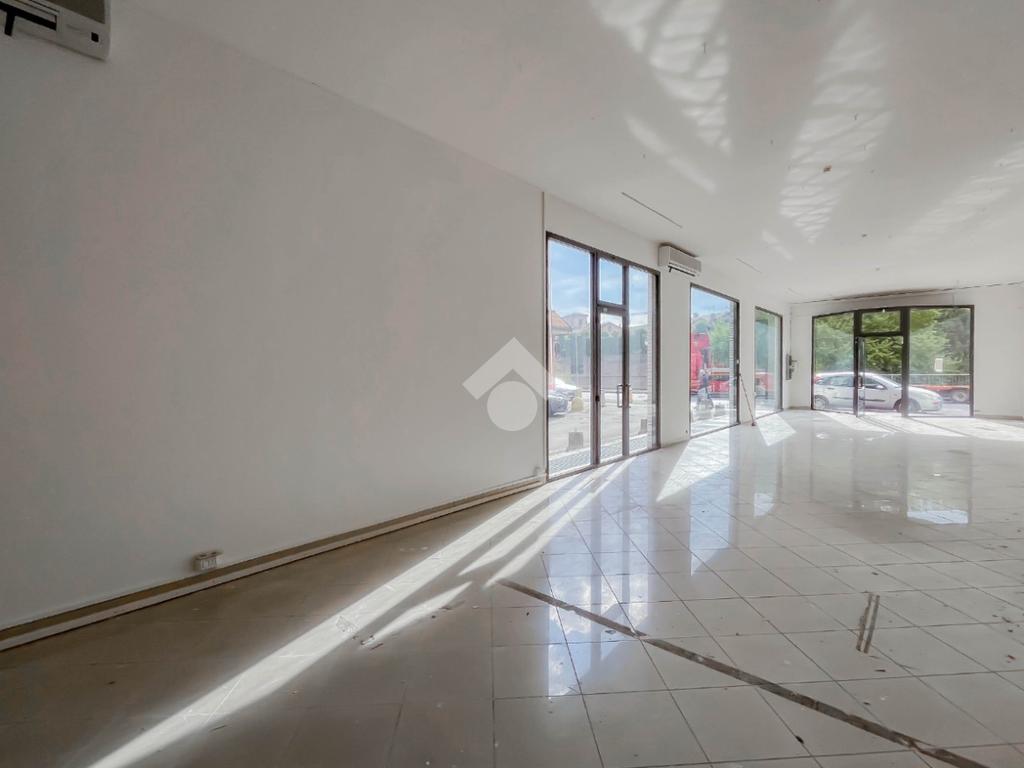La struttura proposta in locazione si sviluppa su di una superficie commerciale di circa 290 metri quadrati disposti al piano terra di un edificio strutturato su cinque livelli. Internamente l'immobile è diviso in due stanze rese particolarmente luminose grazie alla presenza di sei vetrine con affaccio esterno. Il locale è completo degli impianti elettrico, di illuminazione, di riscaldamento e di condizionamento. A completare la soluzione la presenza di due servizi igienici privati.