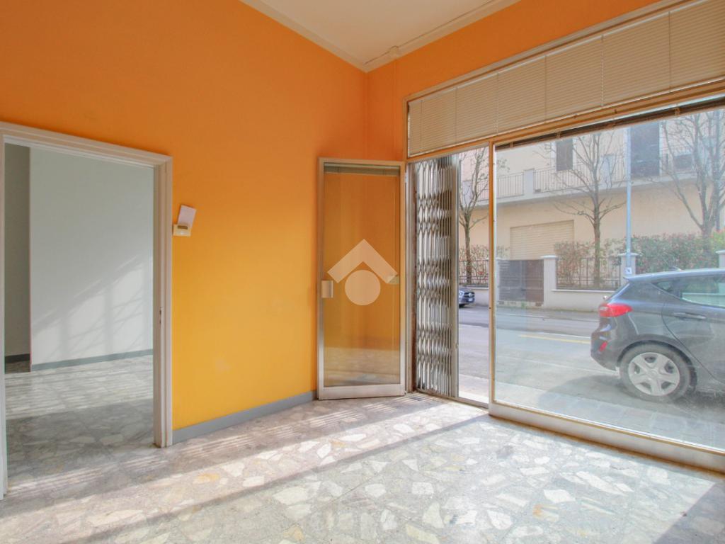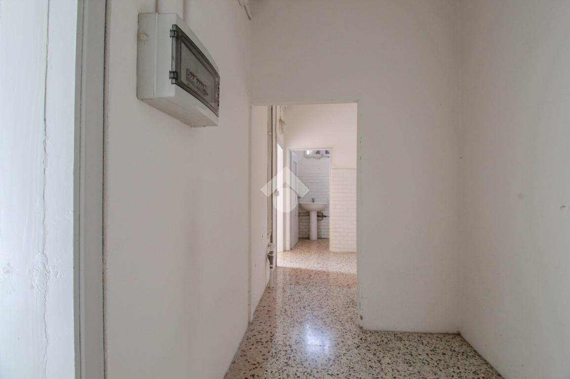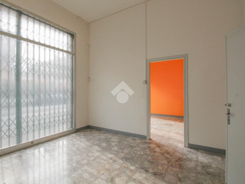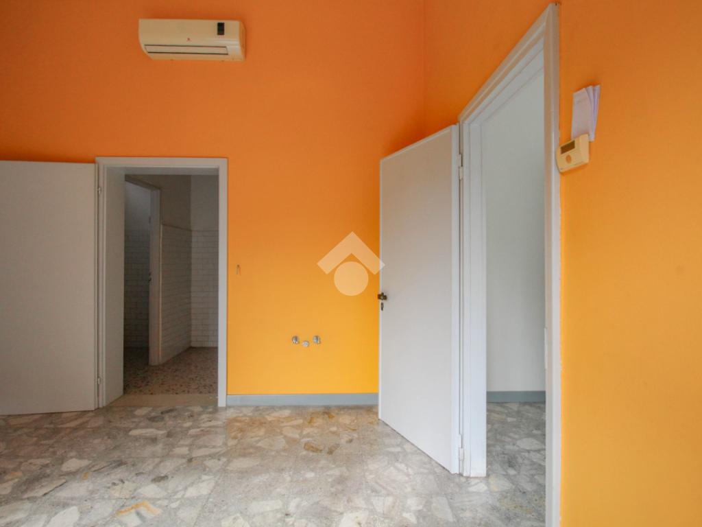 La struttura proposta in vendita è situata al piano terra di un edificio sviluppato su tre livelli e dispone di una superficie calpestabile di circa 80 metri quadrati. Internamente, l'immobile si presenta come suddiviso in due stanze rese particolarmente luminose grazie alla presenza di due vetrine con affaccio esterno. Il locale è dotato dell'impianto elettrico, di illuminazione e di riscaldamento. A completare la soluzione è la presenza di un servizio igienico privato.