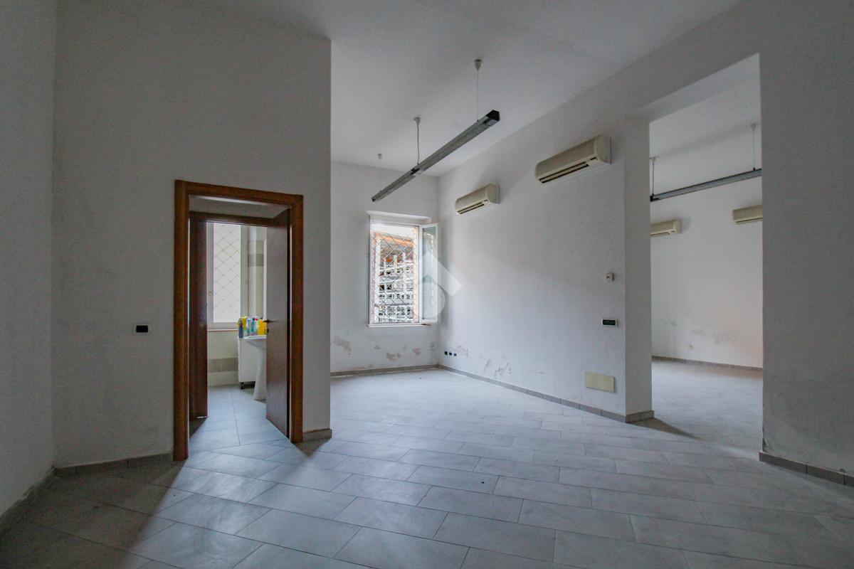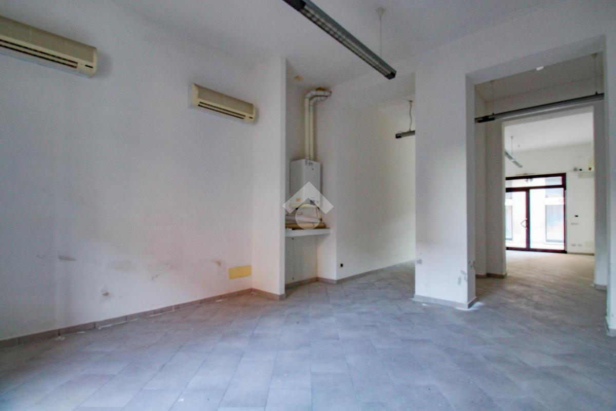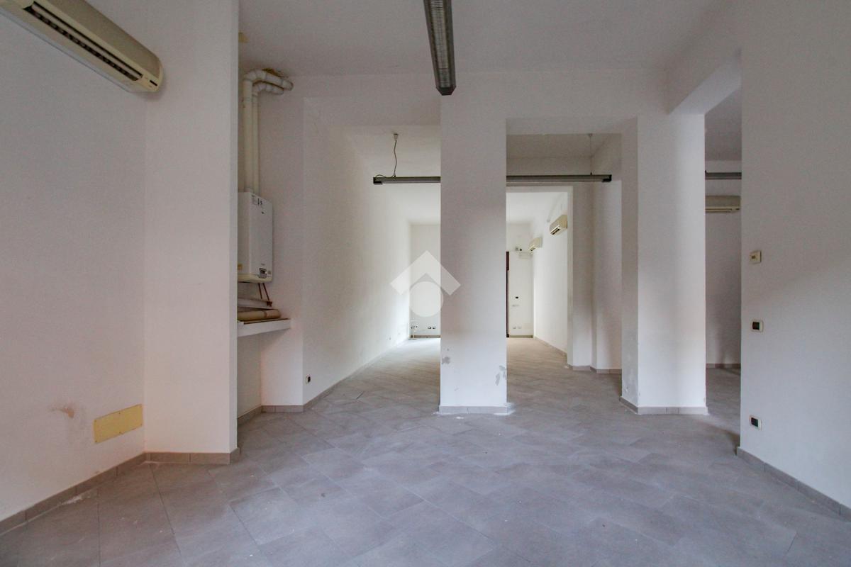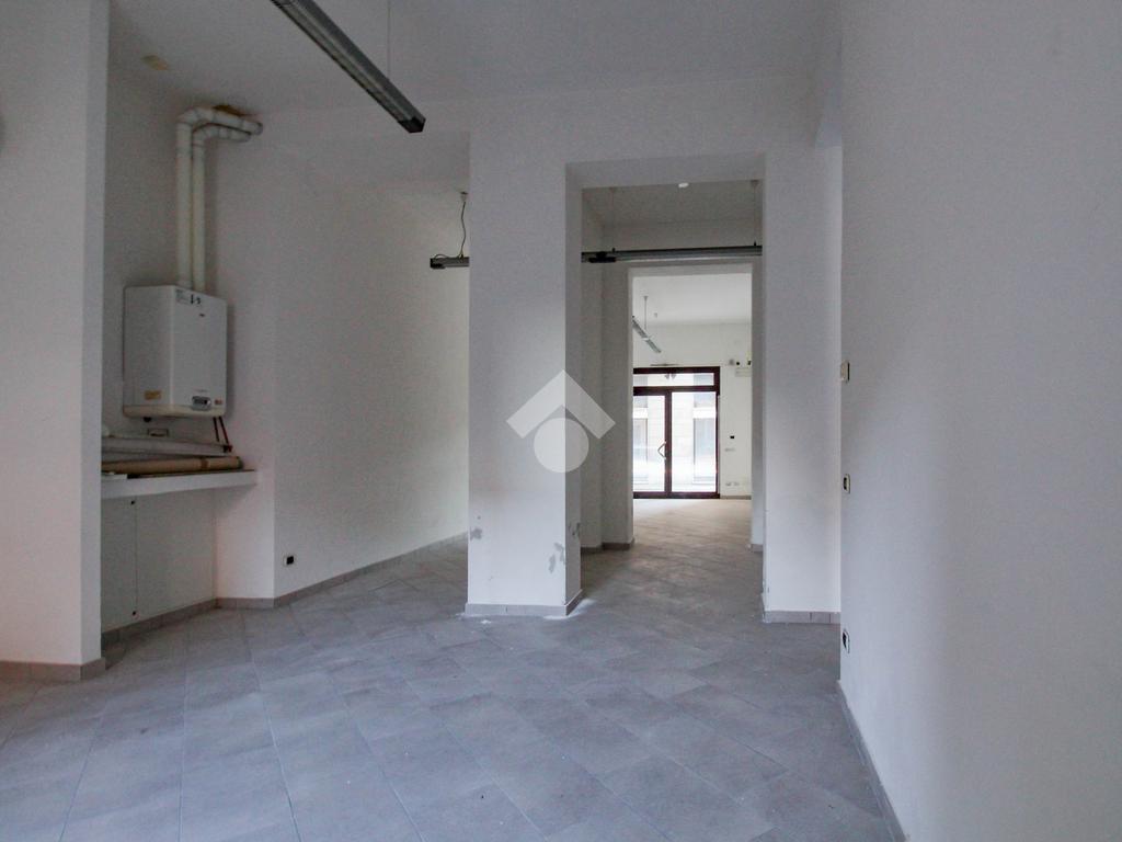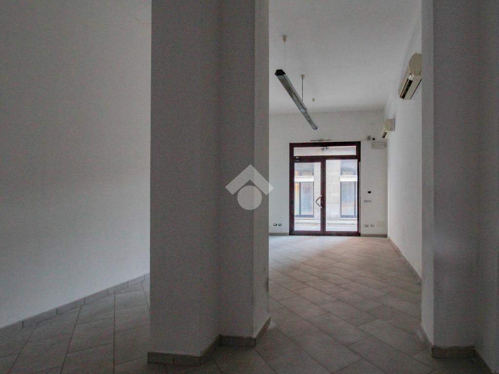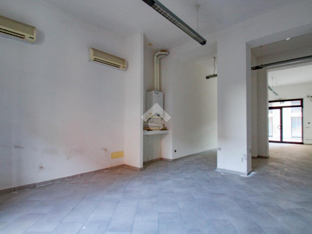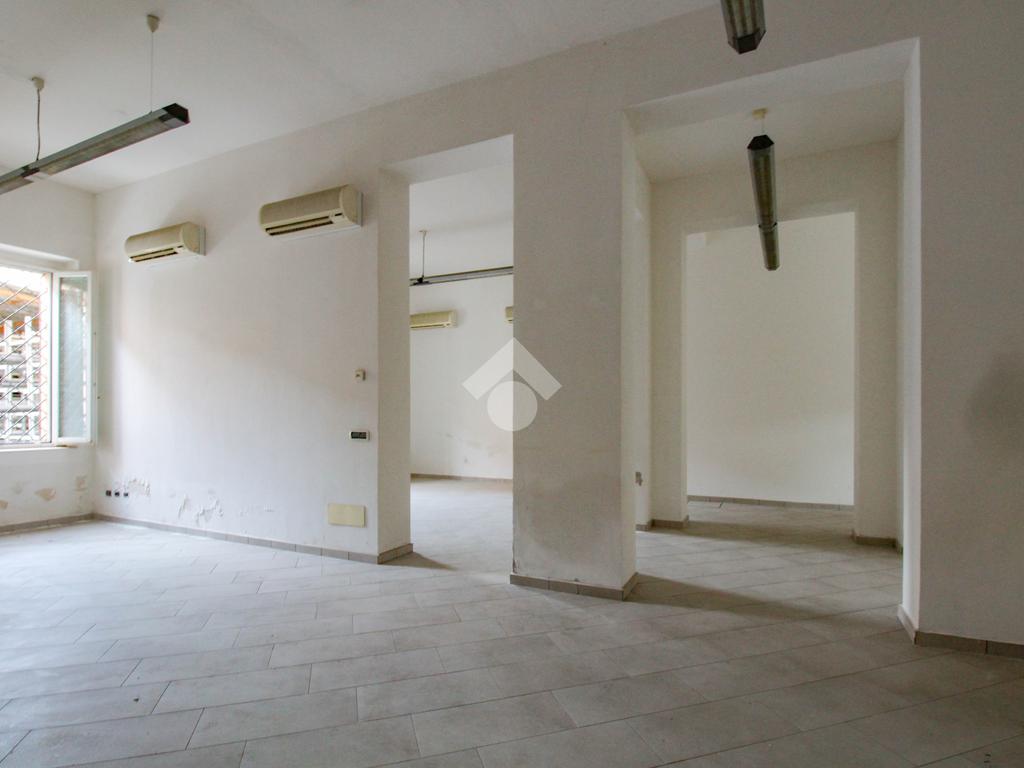 La soluzione si sviluppa su di una superficie commerciale di circa 130 metri quadrati disposti su un unico livello al piano terra di un edificio strutturato su due piani. Internamente l'immobile si presenta come un ampio open space reso molto luminoso grazie alla presenza di una vetrina con affaccio su strada. Il locale è completo degli impianti elettrico, di illuminazione, di riscaldamento e di condizionamento. A completare la soluzione è la presenza di un servizio igienico privato.