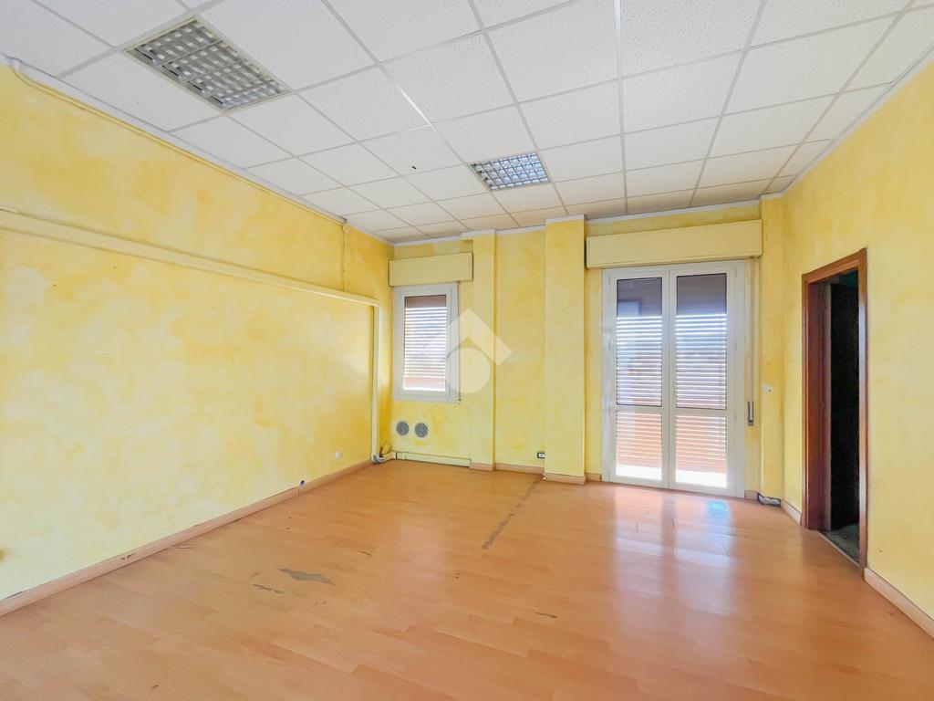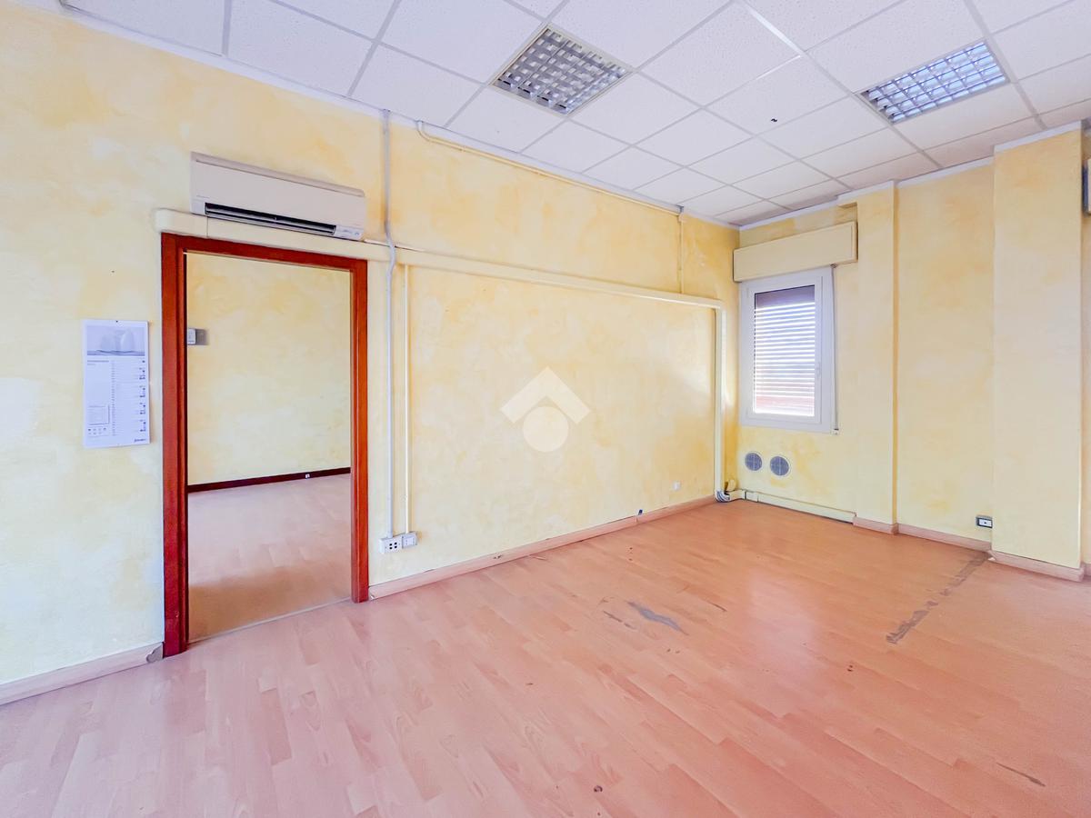 Proponiamo in locazione un ufficio che dispone di una superficie utile di circa 55 metri quadrati, situato al piano terra di un edificio strutturato su cinque piani.